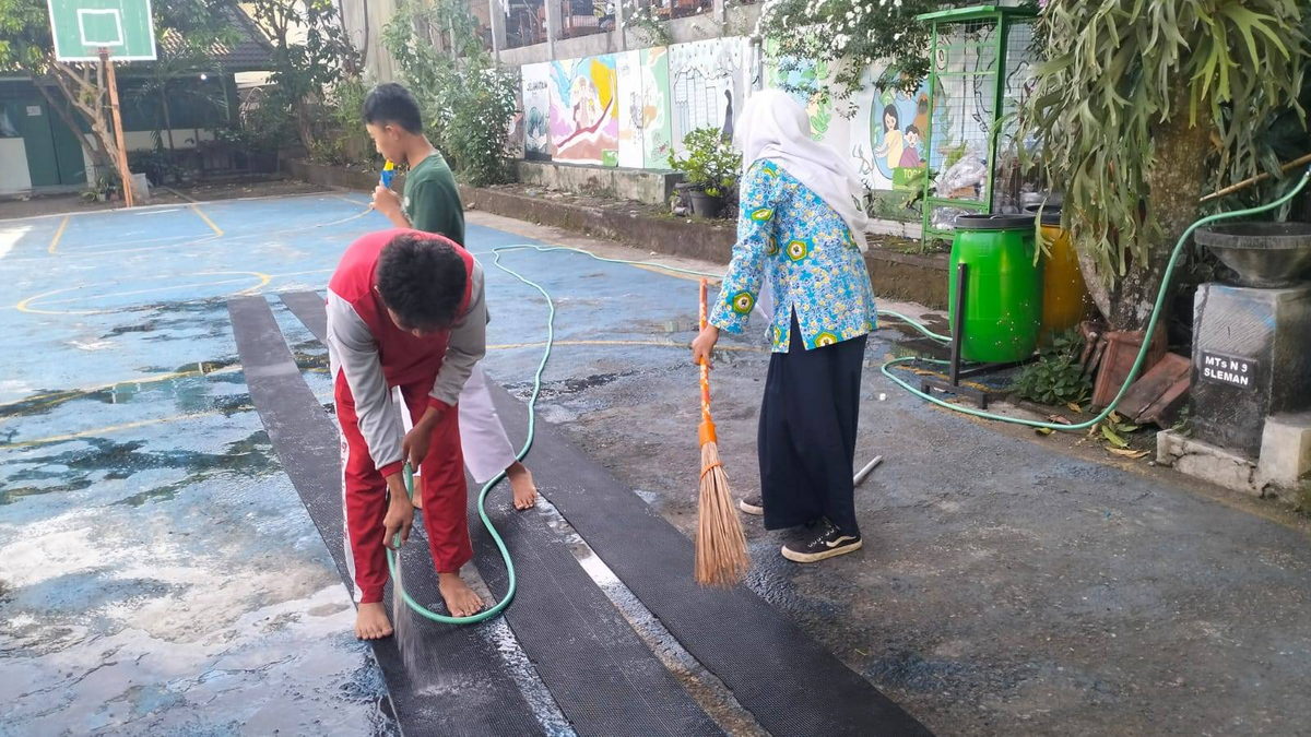 Kemenag Sleman News (MTsN 9 Sleman) – Pengurus OSIS MTsN 9 Sleman kembali melaksanakan kegiatan kerja bakti membersihkan Musala Roudhotul Muttaqin pada Jumat (26/9/2025). Kegiatan ini merupakan bagian dari program rutin OSIS yang dikenal dengan nama MOSQUAD (Musala Squad), yang dilaksanakan setiap dua minggu sekali.