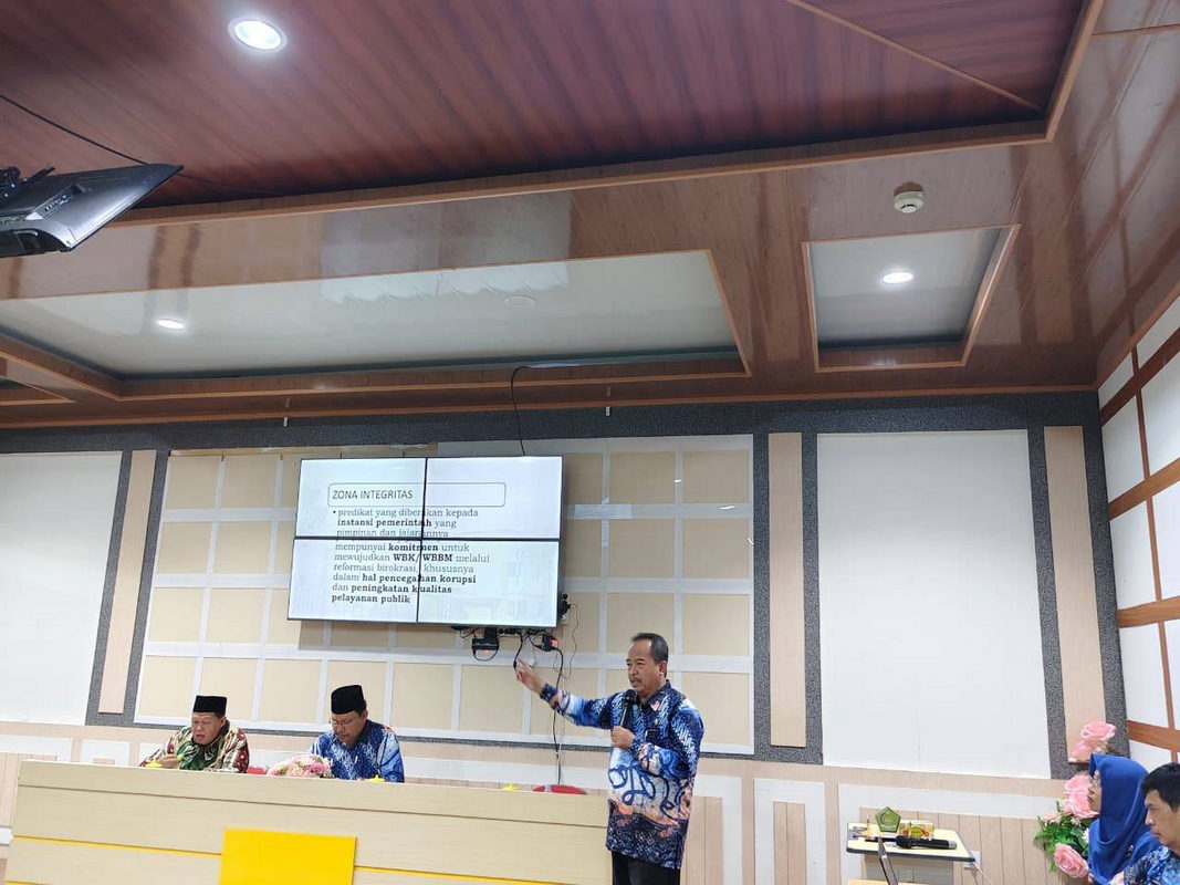 βDengan komitmen bersama maka akan memudahkan dalam menyiapkan semua eviden yang diminta dalam penilaian, selain itu ada tiga hal penting dalam pembangunan Zona Integritas, yakni pelayanan prima kepada siswa dan masyarakat, menjauhi gratifikasi dan korupsi, serta menghadirkan inovasi-inovasi dalam layanan,β jelasnya.