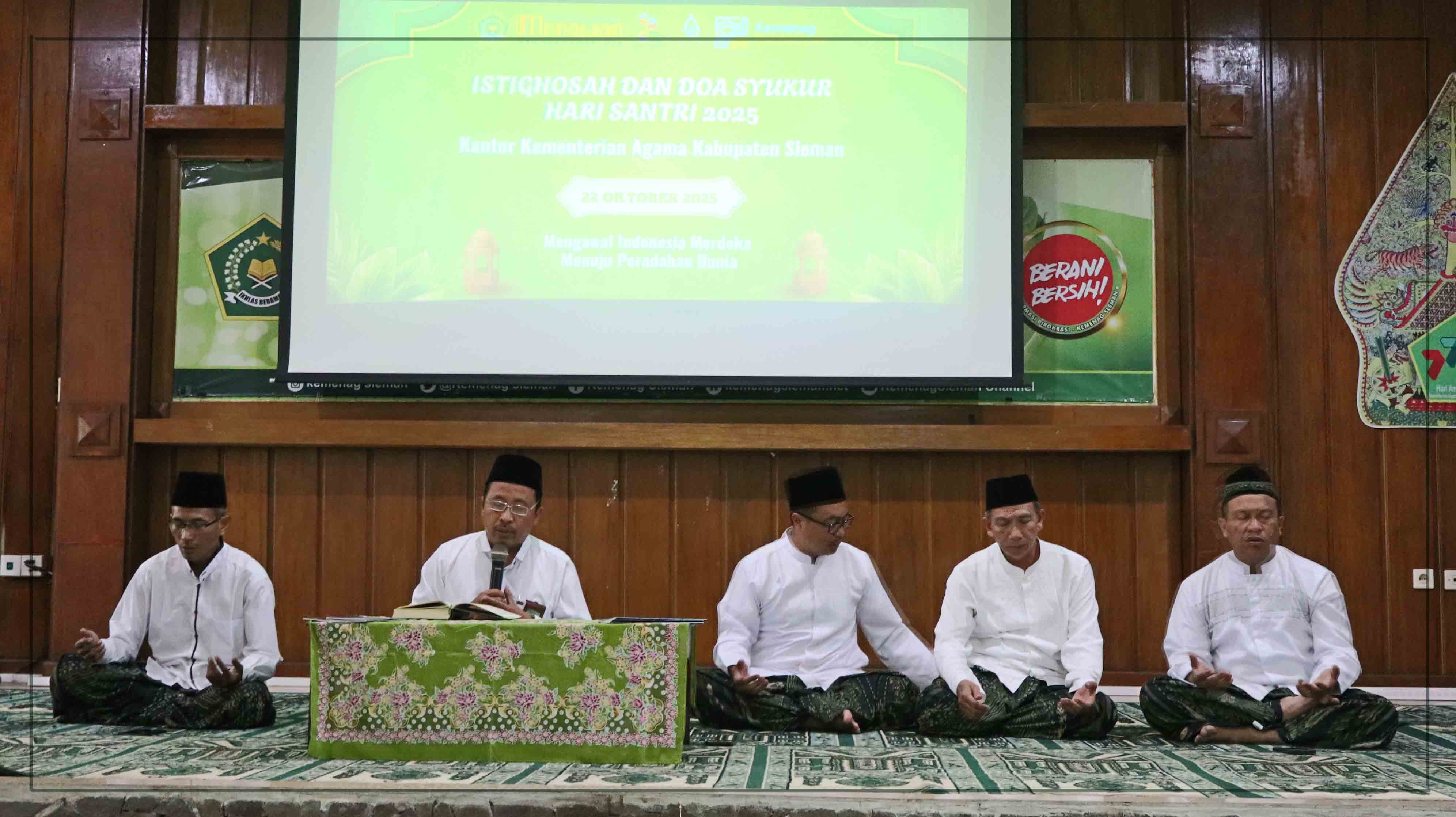 Kemenag Sleman News — Dalam suasana penuh khidmat dan kebersamaan, Kantor Kementerian Agama Kabupaten Sleman menggelar Istighosah, simaan Al-Qur’an, dan doa bersama sebagai rangkaian peringatan Hari Santri 2025, bertempat di Aula lantai 3 Kankemenag Sleman, Rabu (22/10/2025).