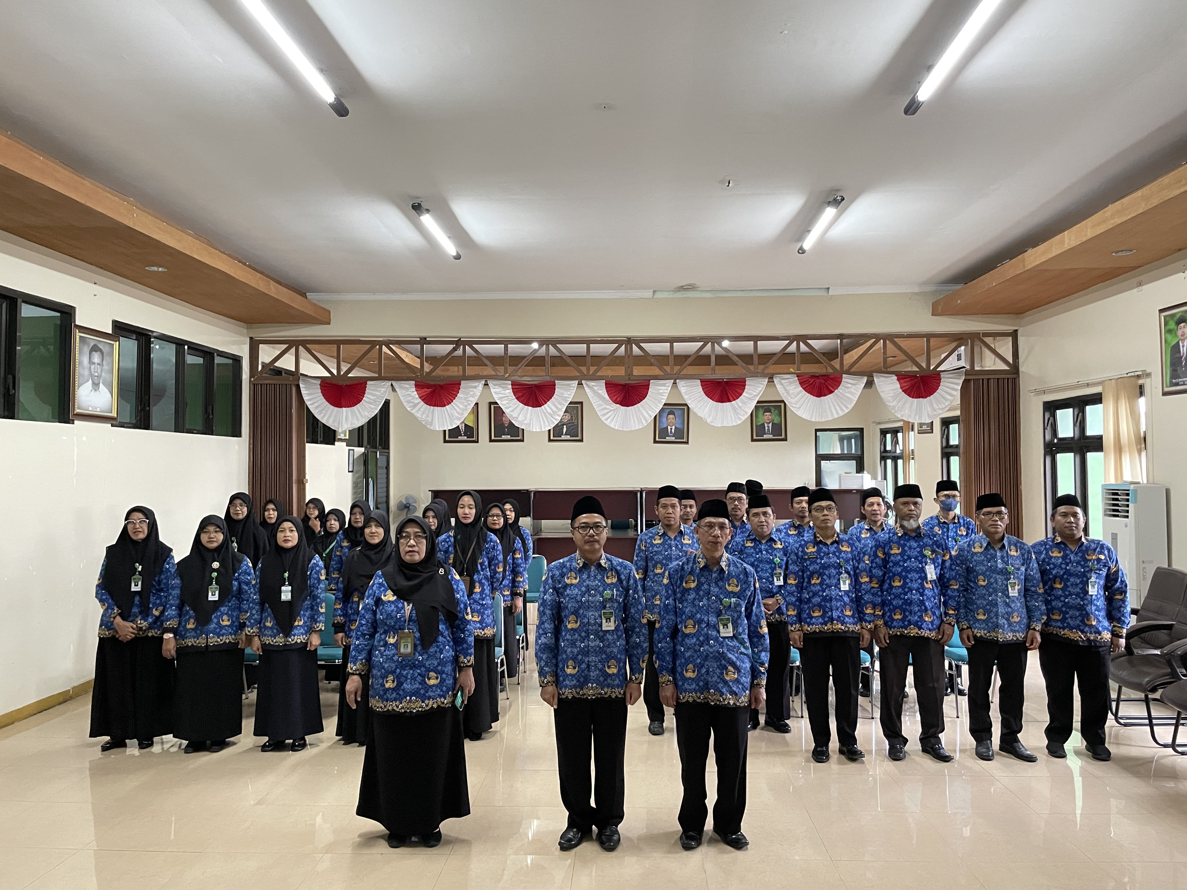 Bertempat di Aula Lantai III Kantor Kemenag Sleman, kegiatan berlangsung khidmat dan diikuti oleh Dewan Pengurus KORPRI Unit Kankemenag Kab. Sleman Masa Bakti Tahun 2025-2027 dengan mengenakan seragam batik KORPRI.