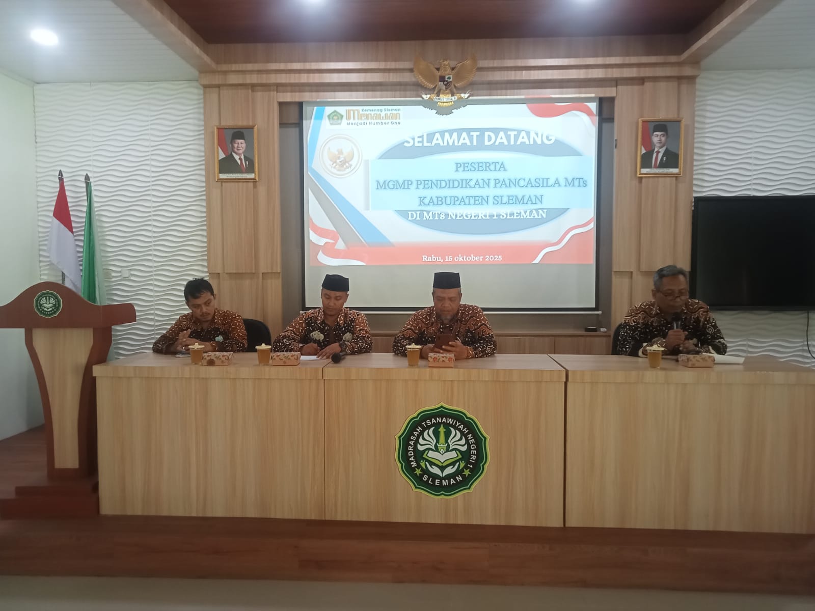 Kemenag Sleman News (MTsN 9 Sleman) – Musyawarah Guru Mata Pelajaran (MGMP) Pendidikan Pancasila MTs se-Kabupaten Sleman menggelar pertemuan MGMP pada Rabu (15/10/2025) bertempat di MTsN 1 Sleman yang beralamatkan di Jalan K. H. M. Basyaruddin, Watukarung, Margoagung, Seyegan, Sleman. Kegiatan ini di mulai pada pukul 09.00 WIB. Kegiatan ini diikuti oleh seluruh anggota MGMP Pendidikan Pancasila MTs se-Kabupaten Sleman, termasuk guru Pendidikan Pancasila perwakilan dari MTsN 9 Sleman yakni Taufiq Nurhuda dan Abu Hasan Al As Ari.