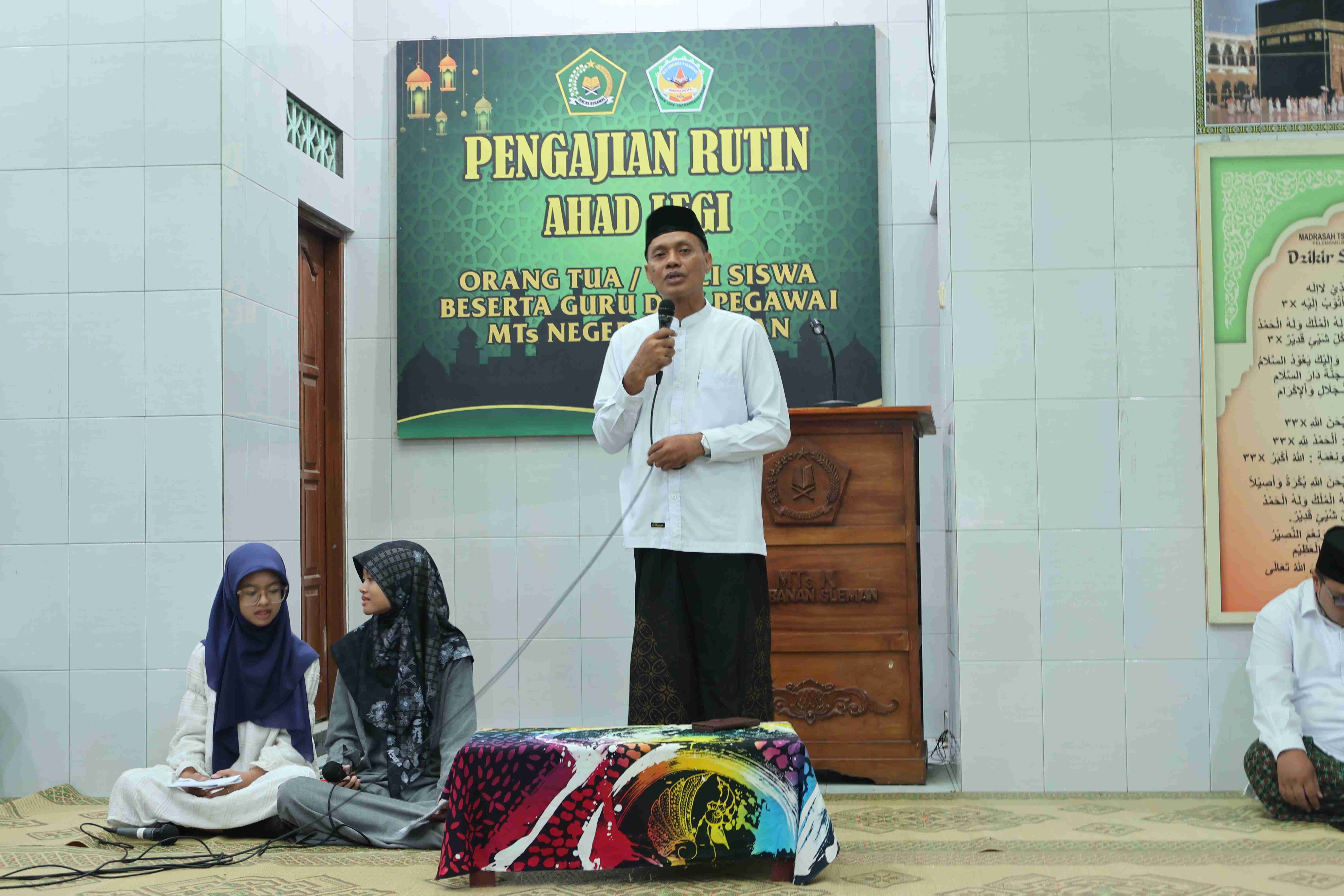 Kepala MTsN 8 Sleman Sampaikan Sambutan pada Pengajian Ahad Legi, Tekankan Kerjasama Madrasah Orang Tua/Wali