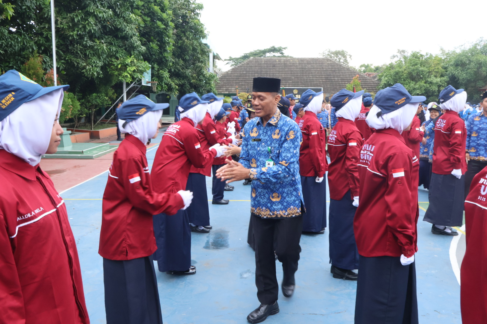 Kemenag Sleman News – (MTsN 8 Sleman) Pelantikan pengurus OSIS MTsN 8 Sleman periode 2025/2026 berlangsung khidmat di halaman madrasah pada Selasa (28/10/2025). Kegiatan yang bertepatan dengan peringatan Hari Sumpah Pemuda ke-97 ini menjadi momen penuh makna bagi para siswa yang dilantik. Usai prosesi pelantikan, seluruh guru dan pegawai madrasah menyampaikan ucapan selamat dan doa terbaik kepada pengurus baru yang siap mengemban amanah untuk satu tahun ke depan. Suasana haru tampak menyelimuti pagi itu, terutama ketika para siswa yang baru dilantik menerima ucapan dari para guru dengan penuh rasa bangga dan tanggung jawab.