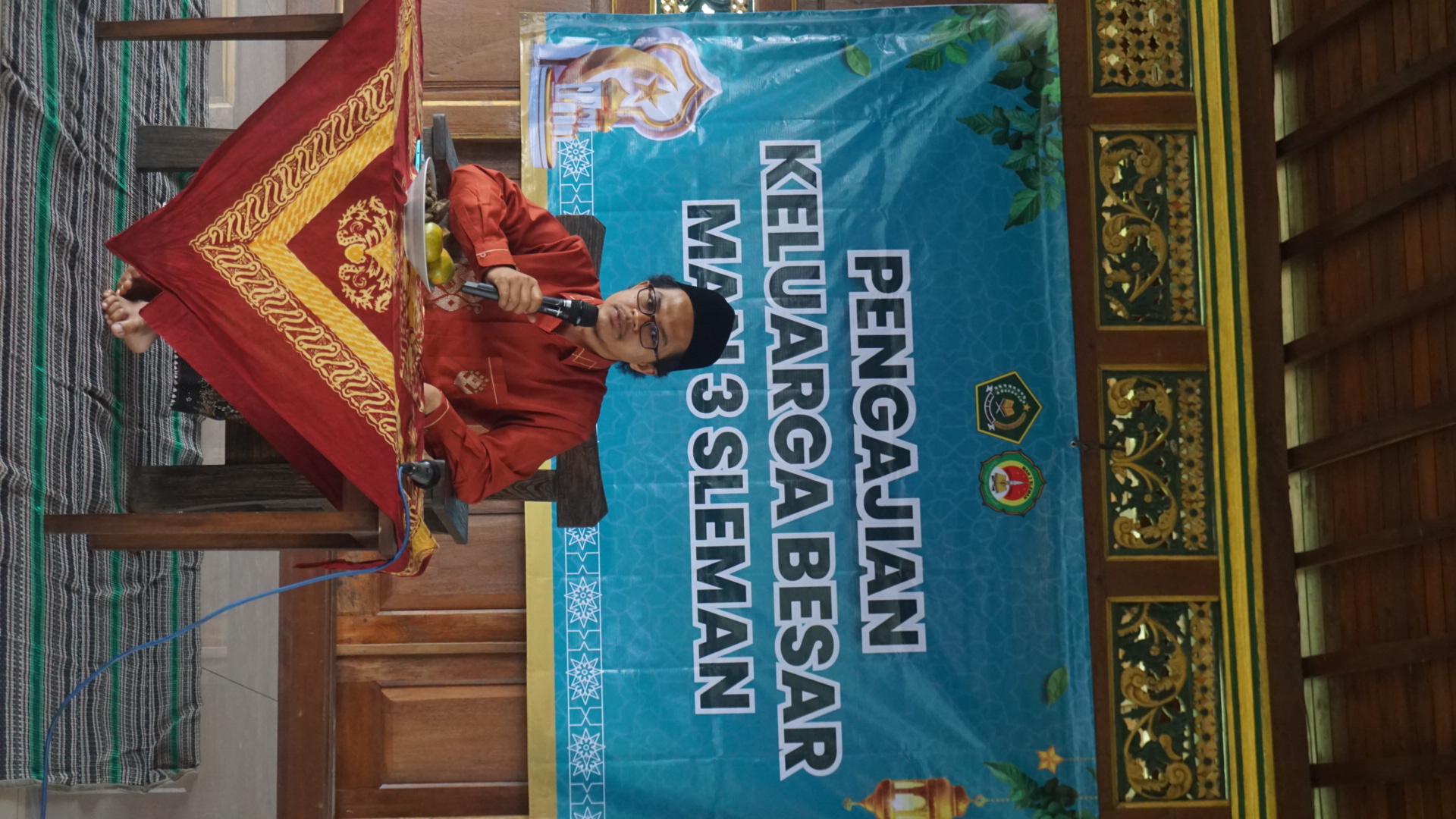 Kegiatan dilanjutkan dengan sambutan dari ketua pengunduh dan Kepala MAN 3 Sleman yang berisi rasa syukur atas terselenggaranya acara dan harapan agar kegiatan pengajian keluarga terus berlanjut sebagai wadah mempererat hubungan antarwarga madrasah. Dalam sambutan tersebut juga disampaikan pentingnya menjaga semangat kebersamaan, saling menghargai, dan menumbuhkan semangat kerja yang dilandasi nilai-nilai keislaman.