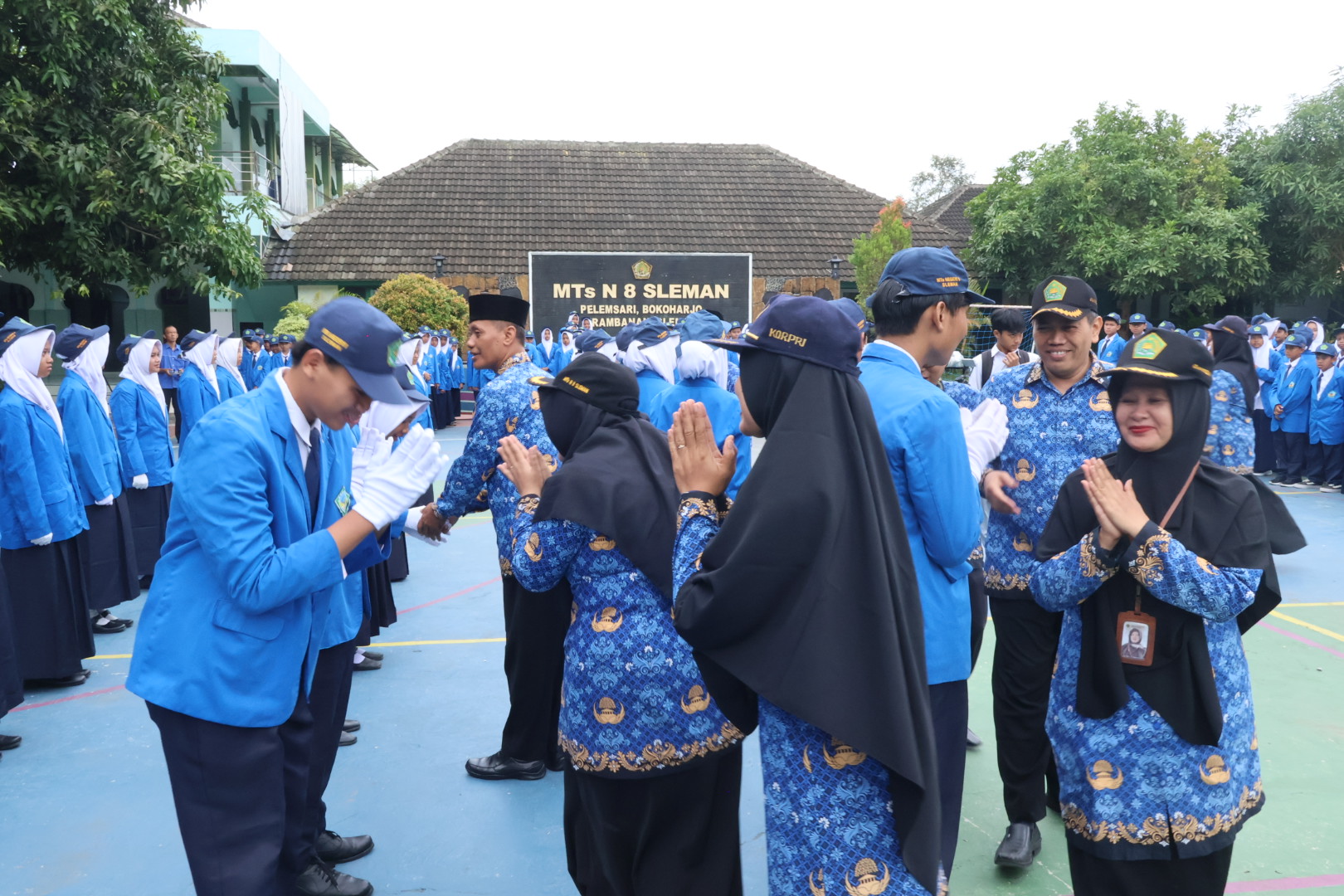 Kemenag Sleman News – (MTsN 8 Sleman) Suasana haru menyelimuti halaman MTsN 8 Sleman pada Selasa (28/10/2025) saat para guru dan pegawai madrasah memberikan ucapan terima kasih kepada pengurus OSIS periode 2024/2025. Momen penuh kehangatan ini berlangsung usai prosesi pelantikan pengurus OSIS baru periode 2025/2026. Dengan mata yang berkaca-kaca, para guru dan pegawai memberikan apresiasi atas kerja keras, dedikasi, dan tanggung jawab pengurus OSIS lama yang telah menjalankan amanahnya dengan baik selama masa kepengurusan.