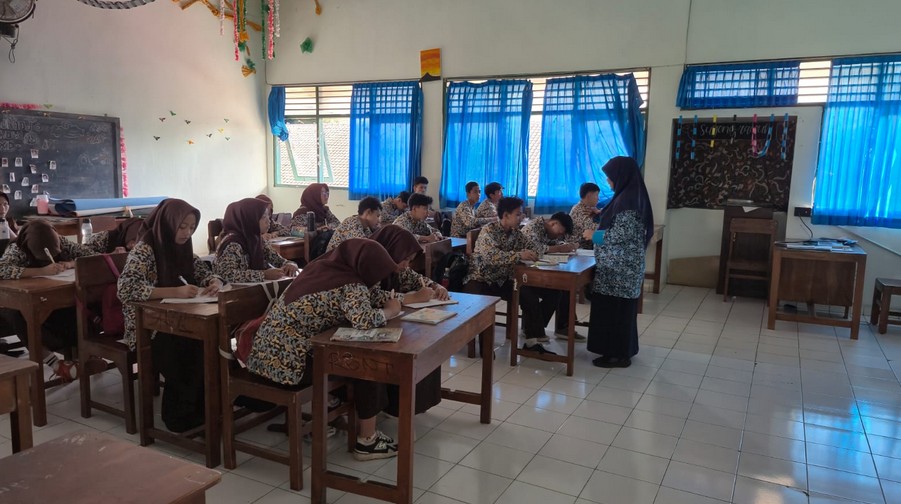 Dalam kegiatan pembelajaran tersebut, Anna Kusmiyana, S.Pd., menyampaikan materi “Recount Text” dengan suasana kelas yang interaktif dan menyenangkan. Melalui kegiatan membaca dan menulis, siswa diajak untuk menceritakan kembali pengalaman pribadi mereka dalam bentuk teks berbahasa Inggris. Aktivitas ini mendorong kemampuan siswa dalam menyusun kalimat yang runtut serta meningkatkan keterampilan berbicara dan menulis secara alami.