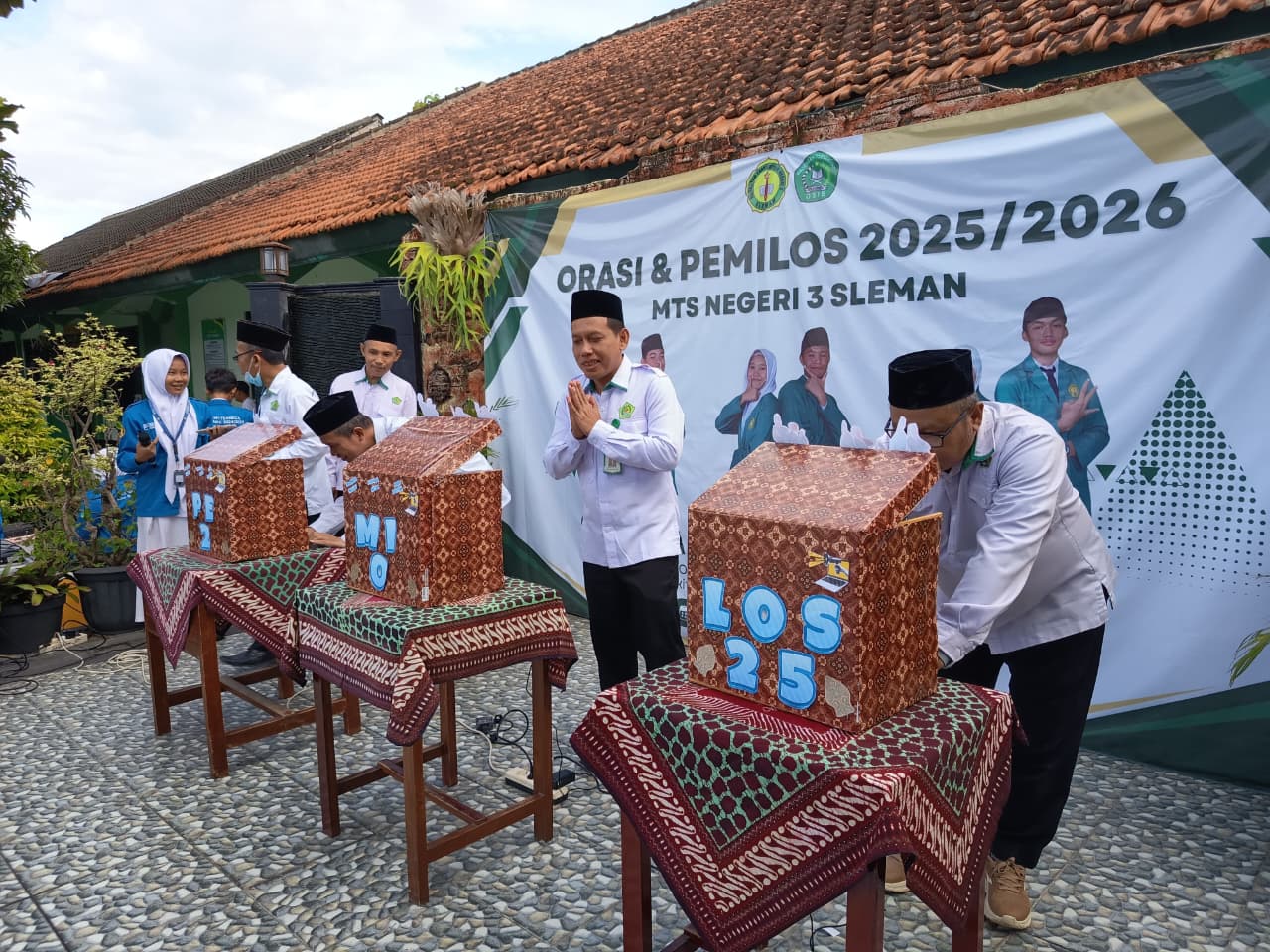 Kemenag Sleman News (MTs Negeri 3 Sleman) – Pemilihan Pengurus OSIS MTs Negeri 3 Sleman masa bakti 2025/2026 dihelat pada Senin (3/11/2025) pukul 07.00 sampai 09.00 WIB di panggung madrasah.
