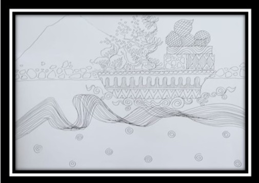 Tak hanya berhenti pada keindahan motif flora, Bahtera Batik Sleman juga menampilkan gelombang laut bermotif mega mendung yang melambangkan dinamika kehidupan maritim Indonesia. Gelombang tersebut menjadi simbol perjalanan bangsa yang penuh tantangan namun tetap berlayar menuju masa depan. Silvia memadukan unsur darat dan laut secara harmonis, seolah menggambarkan bagaimana budaya Sleman yang berakar kuat tetap mampu mengarungi samudra perubahan zaman tanpa kehilangan jati diri.