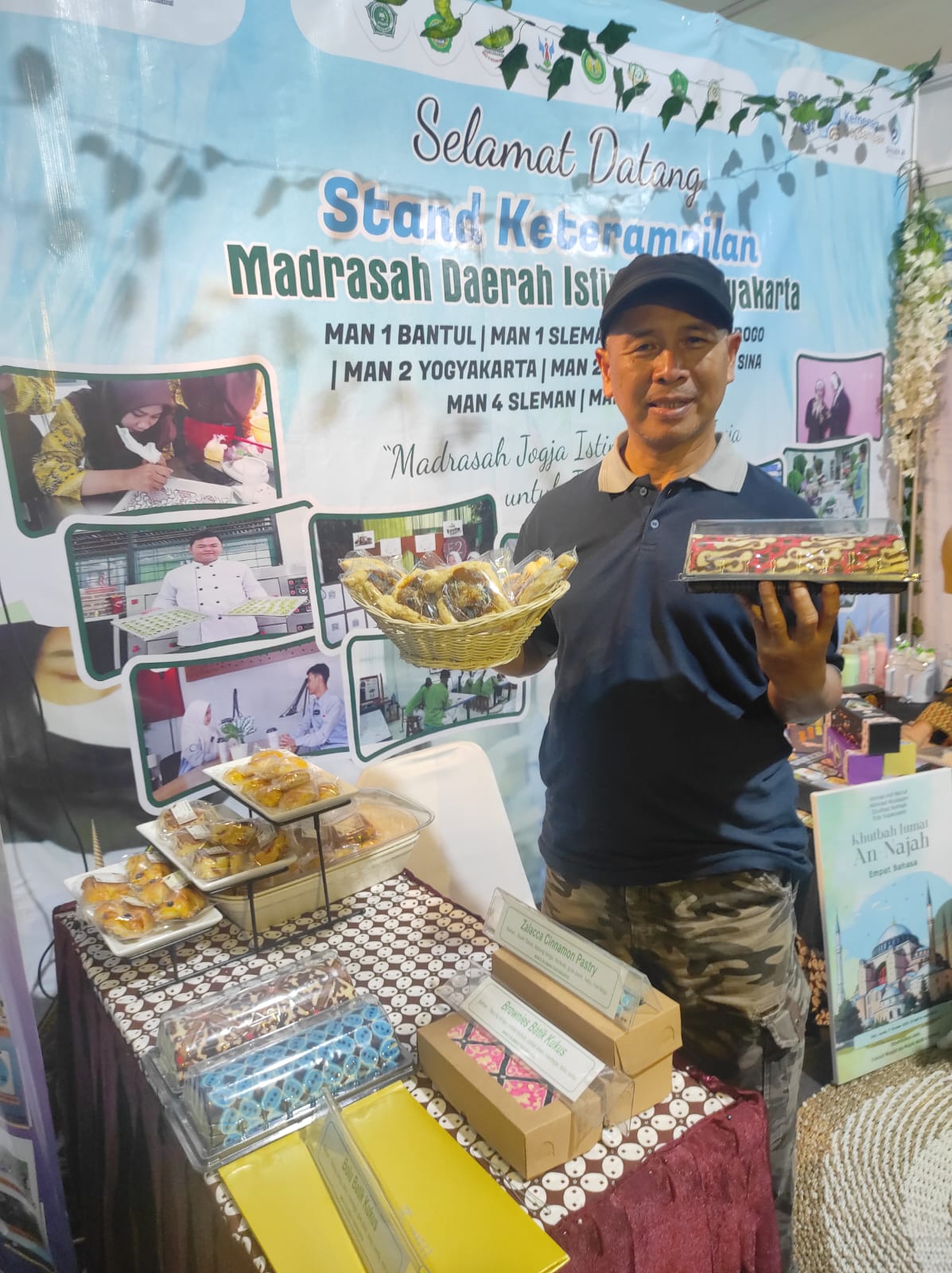 Dari MAN 5 Sleman hadir Kepala Madrasah, Mucharom, S.Ag., M.S.I., bersama Kepala Laboratorium Keterampilan, Didik Sumarah Adi, M.Pd.T. Pada kesempatan tersebut, MAN 5 Sleman menampilkan produk unggulan dari program keterampilan Tata Boga, yaitu Zalaka Pastry dan Cake Batik, yang diampu oleh Eka Widyaningrum, S.Pd.