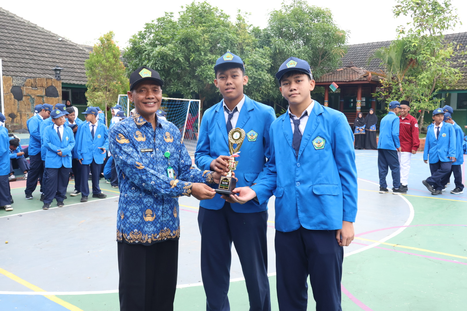 Kemenag Sleman News (MTsN 8 Sleman) — Upacara Hari Pahlawan yang digelar di lapangan MTsN 8 Sleman pada Senin (10/11/2025) berlangsung istimewa dengan adanya pemberian apresiasi kepada para siswa yang berhasil mengharumkan nama madrasah pada ajang Pekan Kompetisi Madrasah (PKM) Cabang Voli MTs Tingkat Provinsi DIY Tahun 2025.