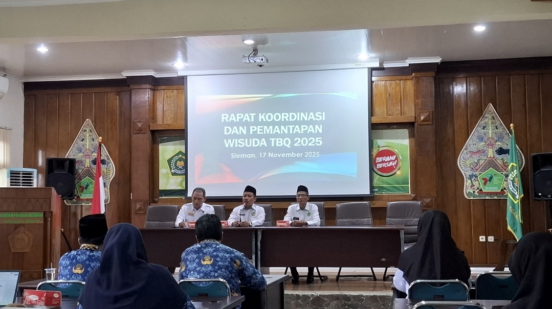 Kemenag Sleman News – Dalam rangka mempersiapkan terwujudnya Sleman Religi melalui Tuntas Baca Quran, Kantor Kementerian Agama Kabupaten Sleman melalui Seksi Pendidikan Agama Islam menggelar Rapat Koordinasi dan Pemantapan Wisuda TBQ 2025 pada Senin (17/11/2025) di Aula lantai 3 kantor setempat.