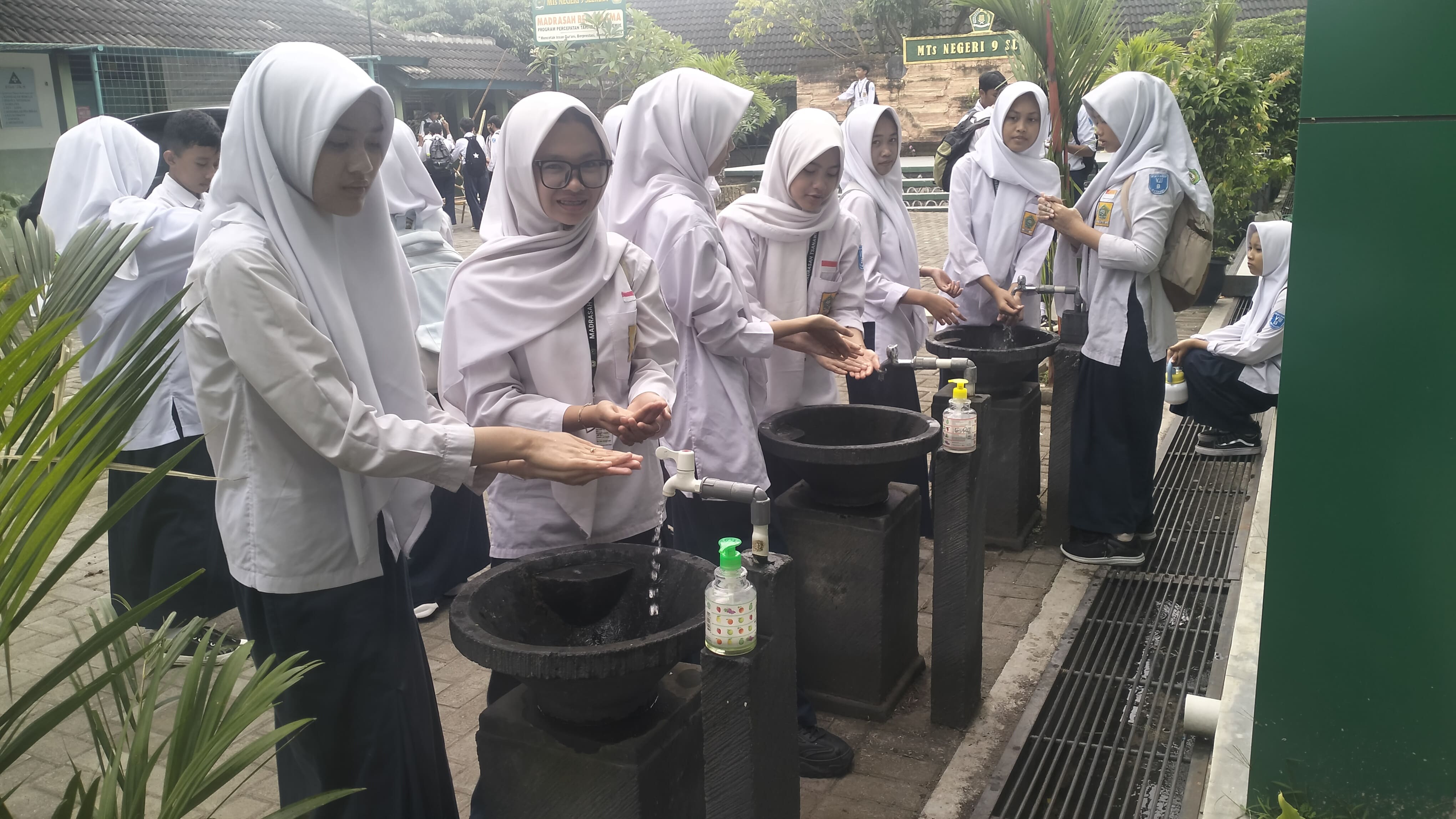 Sementara itu, kelas VIII melaksanakan praktik mencuci tangan sesuai standar WHO. Para siswa diajarkan enam langkah mencuci tangan yang benar, termasuk area-area yang sering terlewat, seperti punggung jari dan sela-sela tangan. Praktik ini bertujuan menumbuhkan kebiasaan hidup bersih dan sehat sebagai bagian dari pembentukan perilaku positif.