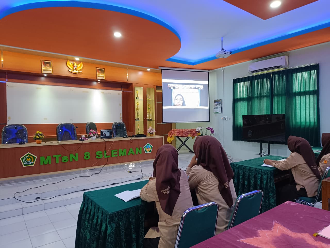 Kemenag Sleman News (MTsN 8 Sleman) — Siswa MTsN 8 Sleman yang tergabung dalam Palang Merah Remaja (PMR) mengikuti kegiatan Orientasi Calon Anggota PMR (Daring) pada Jumat (14/11/2025). Kegiatan ini dilaksanakan secara daring melalui Zoom dan dipusatkan di Aula MTsN 8 Sleman. Acara ini merupakan program resmi yang diselenggarakan oleh Palang Merah Indonesia (PMI) Kabupaten Sleman untuk memperkenalkan dasar-dasar kepalangmerahan kepada calon anggota baru.
