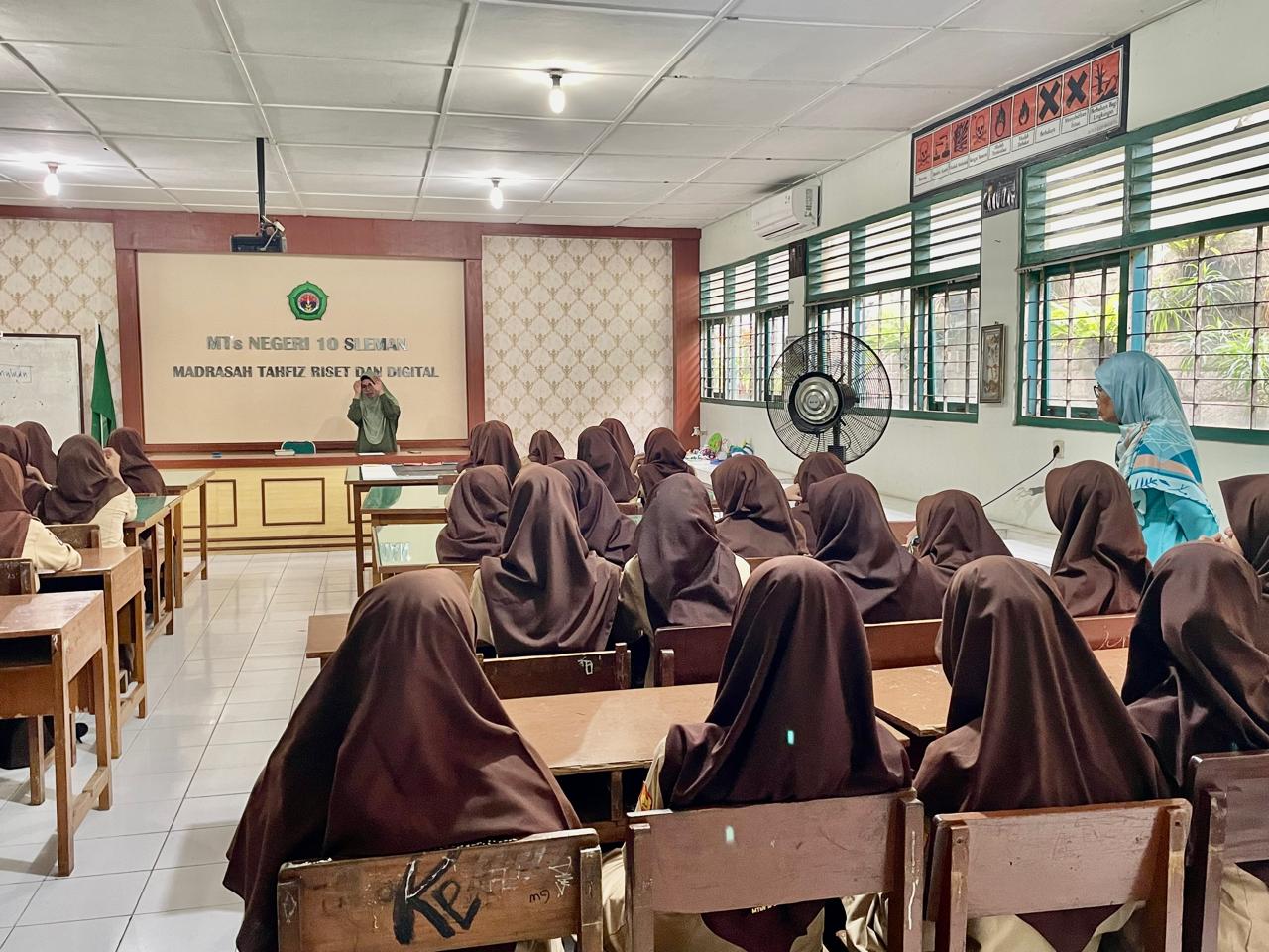 Kemenag Sleman News ( MTsN 10 Sleman) – MTsN 10 Sleman secara rutin mengadakan Program Keputrian setiap Jumat siang, bertepatan dengan waktu salat Jumat. Program ini dikhususkan bagi siswi yang sedang berhalangan salat karena haid. Berbagai materi seputar keagamaan, kesehatan, dan kehidupan sosial disampaikan secara bergantian oleh para pengampu terjadwal, dengan harapan dapat membuka wawasan dan pengetahuan tentang seluk beluk kewanitaan.