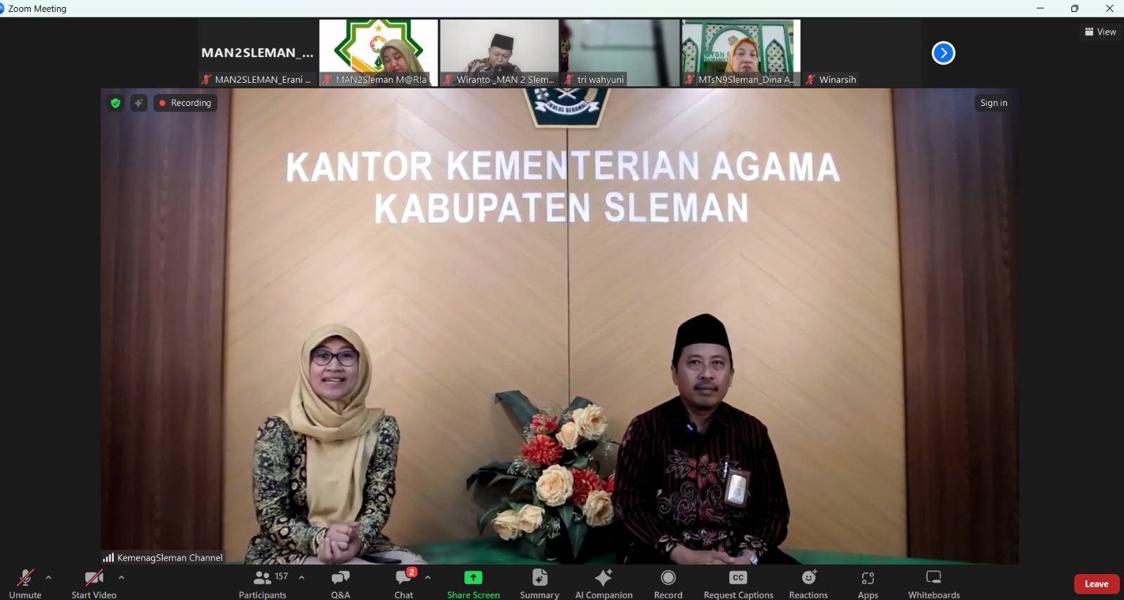 Kemenag Sleman News (MAN 2 Sleman)– Guru dan pegawai MAN 2 Sleman mengikuti kegiatan Zoom Meeting Podcast Rubik (Ruang Bicara Kita) yang diselenggarakan oleh Kantor Kementerian Agama Kabupaten Sleman pada pagi ini. Podcast dilaksanakan kamis, 04/12/25 pukul 07.30 WIB tersebut mengusung tema “Road to Hari Amal Bakti ke-80” dan menghadirkan Kepala Kankemenag Sleman, H. Nadhif, S.Ag., M.S.I. sebagai narasumber utama.