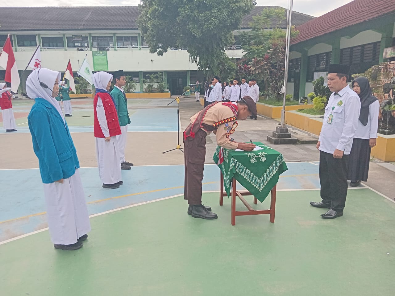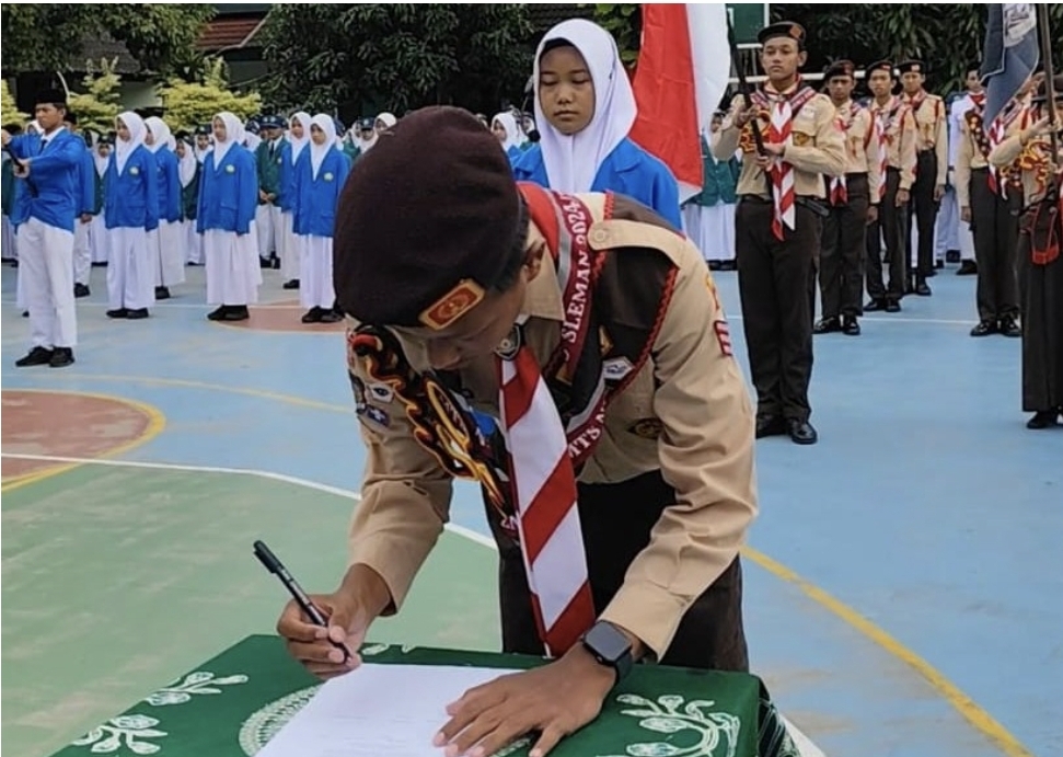 Kemenag Sleman News (MTsN 3 Sleman) – MTsN 3 Sleman menggelar pelantikan Majelis Penggalang (MP) pada Senin (8/12/2025) bertempat di halaman madrasah. Prosesi berlangsung tertib dan penuh khidmat, dipimpin langsung oleh Kepala Madrasah, Suwardi, S.S., M.Pd.