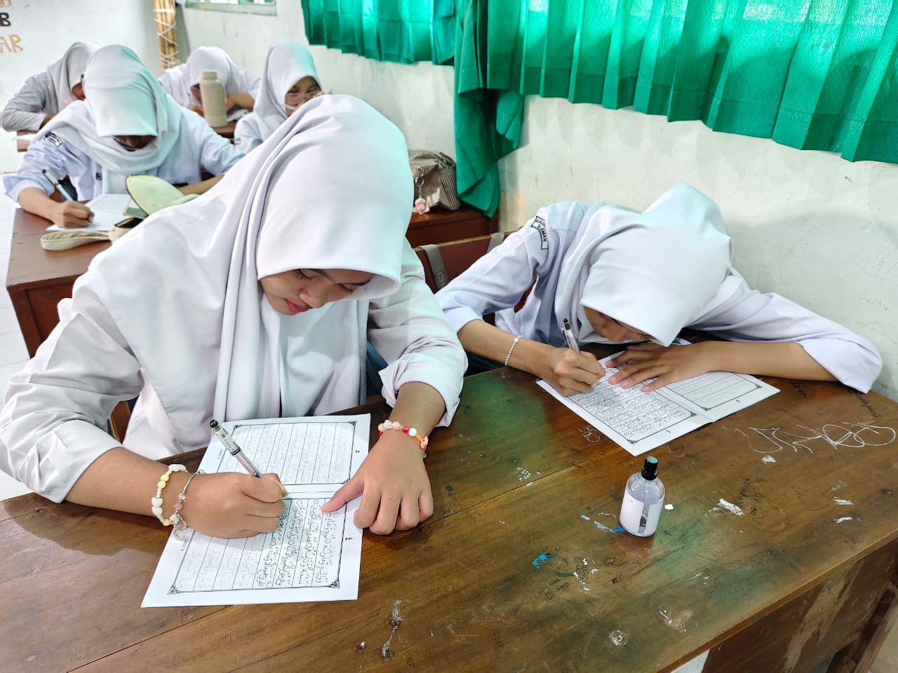 Selain aspek membaca, siswa juga mendapatkan pelatihan menulis Al-Qur’an. Pada sesi ini, mereka belajar menggunakan pedoman Iqra’ 6, sehingga diharapkan mampu meningkatkan ketelitian, kerapian, dan pemahaman huruf hijaiyah secara menyeluruh.