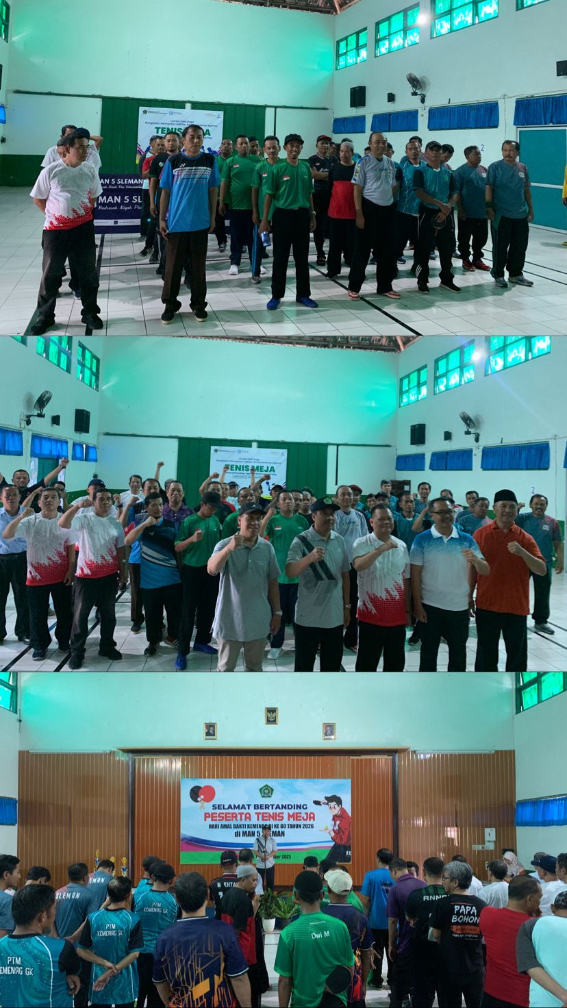 Kemenag Sleman News – MAN 5 Sleman menjadi tuan rumah pelaksanaan Pertandingan Tenis Meja Antar Kementerian Agama Kabupaten/Kota dan Kanwil Kemenag DIY dalam rangka memperingati Hari Amal Bhakti (HAB) Kementerian Agama ke-80 dengan mengusung tema “Kerukunan untuk Indonesia Emas”. Kegiatan tersebut dilaksanakan pada Selasa (2/12/2025) bertempat di aula MAN 5 Sleman.