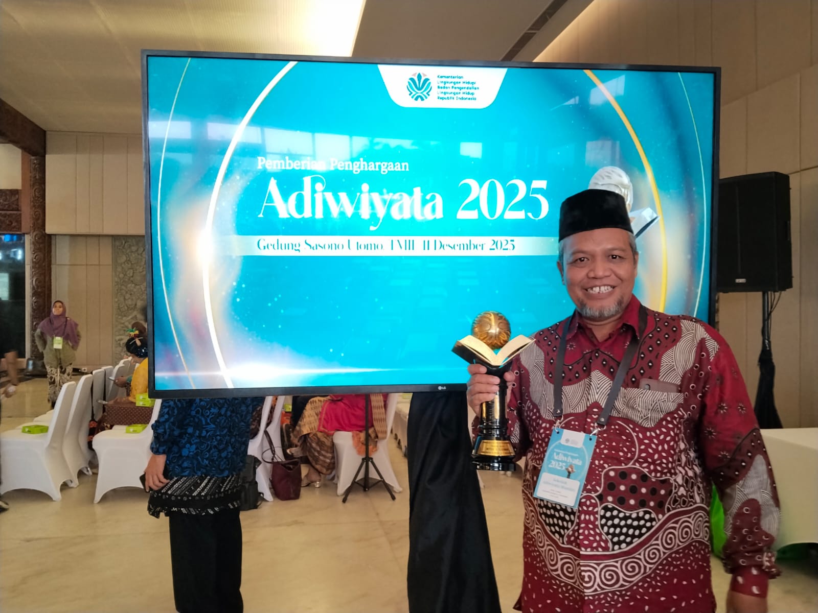 Kemenag Sleman News (MTsN 1 Sleman) – MTsN 1 Sleman kembali menorehkan prestasi membanggakan di tingkat nasional dengan meraih Penghargaan Adiwiyata Mandiri Tahun 2025. Penghargaan ini diserahkan pada Rabu, 10 Desember 2025 dalam acara penganugerahan Adiwiyata Nasional dan Adiwiyata Mandiri yang berlangsung di Gedung Sasono Utomo, Taman Mini Indonesia Indah (TMII), Jakarta. Kepala MTsN 1 Sleman, H. Sutarjo, S.Ag., M.Pd.I, hadir secara langsung untuk menerima penghargaan tersebut.