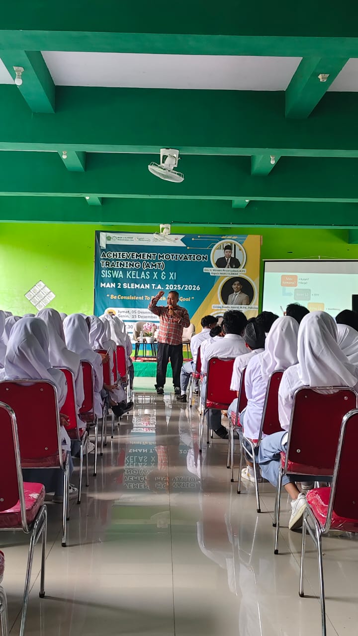 Kemenag Sleman News (MAN 2 Sleman)– Kegiatan Achievement Motivation Training (AMT) kelas XI berhasil dilaksanakan pada Senin (15/12sebagai upaya meningkatkan motivasi serta kesiapan diri dalam mengembangkan potensi yang dimiliki. Kegiatan ini bertujuan membentuk pola pikir positif peserta didik dalam merencanakan masa depan pendidikan dan karier mereka.