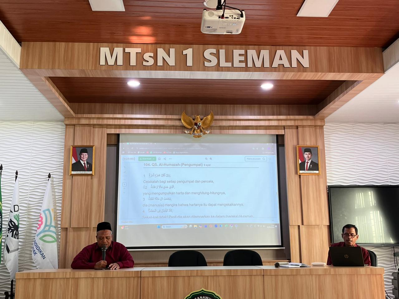 Kemenag Sleman News (MTsN 1 Sleman) – Dalam rangka memperingati Hari Amal Bhakti (HAB) ke-80 Kementerian Agama Republik Indonesia, MTsN 1 Sleman menggelar kegiatan khataman Al-Qur’an pada Jumat (2/1/2026). Kegiatan ini dilaksanakan secara serentak mulai pukul 07.00 WIB dan diikuti oleh seluruh guru, pegawai, serta murid kelas VII, VIII, dan IX.