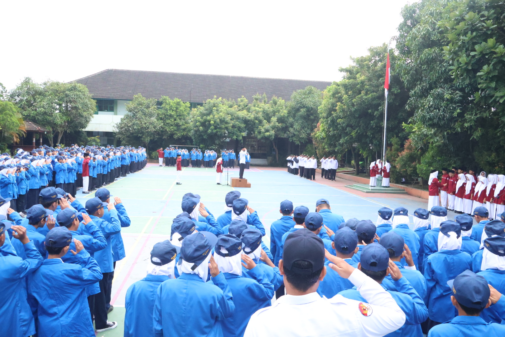Upacara dilaksanakan di halaman madrasah dengan petugas upacara dari pengurus OSIS MTsN 8 Sleman. Sementara itu, Kepala MTsN 8 Sleman, Agus Sholeh, S.Ag., bertindak sebagai pembina upacara.
