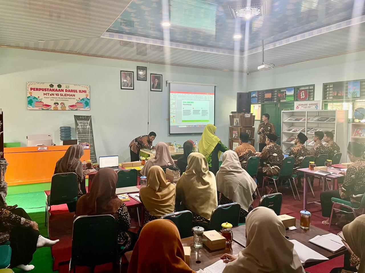 Kemenag Sleman News (MTsn 10 Sleman) – Dalam upaya merespons dinamika kebijakan pendidikan terbaru, MTsN 10 Sleman menggelar Sosialisasi Keputusan Menteri Agama (KMA) Nomor 1503 Tahun 2025 tentang Implementasi Pembelajaran Mendalam serta Kurikulum Berbasis Cinta (KBC). Kegiatan ini dilaksanakan di Ruang Baca Perpustakaan Darul Ilmi dan diikuti oleh guru serta pegawai madrasah. Hadir sebagai narasumber Pengawas Pembina Madrasah Asih Budiati, SPd. M.Sc. dan Instruktur Nasioal Septy Andari Putri, S.Pd., M.Pd., Rabu (31/12/2025)