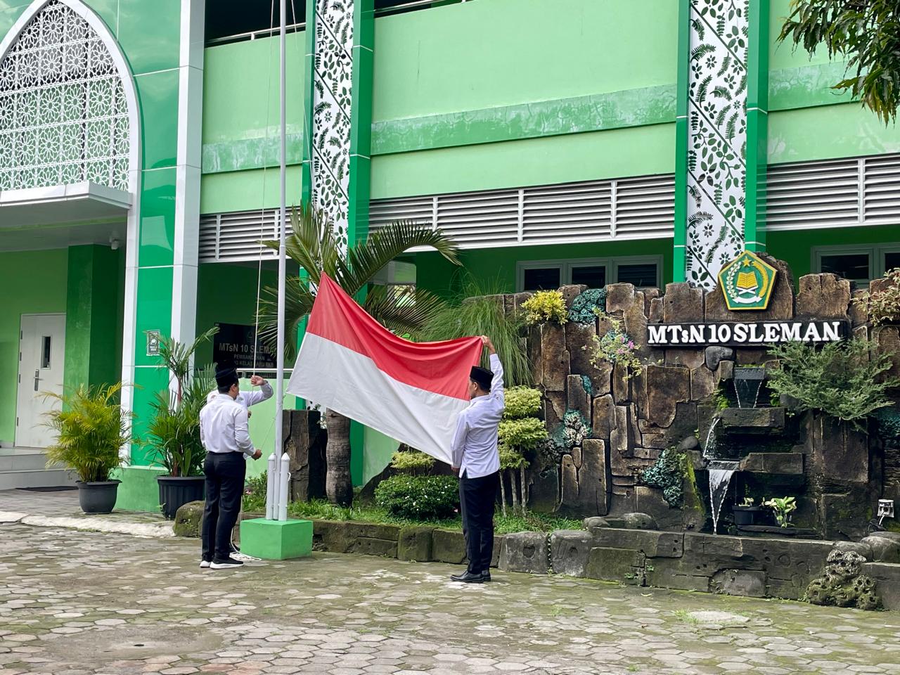 Upacara berjalan dengan dengan khidmat dan lancar. Hal ini didukung kesigapan petugas yang kali ini spesial diampu oleh guru dan pegawai MTsN 10 Sleman. Adapun susunan petugas upacara sebagai berikut: Pemimpin Upacara: Sargiyono, S.Ag., Pembawa Acara: Gayatri Kumala Wardani, S.Pd, Pengibar Bendera: Muhammad Asro Al Aziz, S.Ag, Dwi Sofian Sugiyanto, S.Pd, Ilham Bagoes Tripoetra, S.Pd, Pendamping Pembina: Muhammad Ikhwan Nurohim, S.Pd, Pembaca Doa: Exwan Juni Prasetiya, S.Fil.I, Pembaca naskah UUD 1945 : Insan Yudha Pranata, S.Hum., Pembaca Doa: Akhmad Anwar Asy’ari, S.Ag.