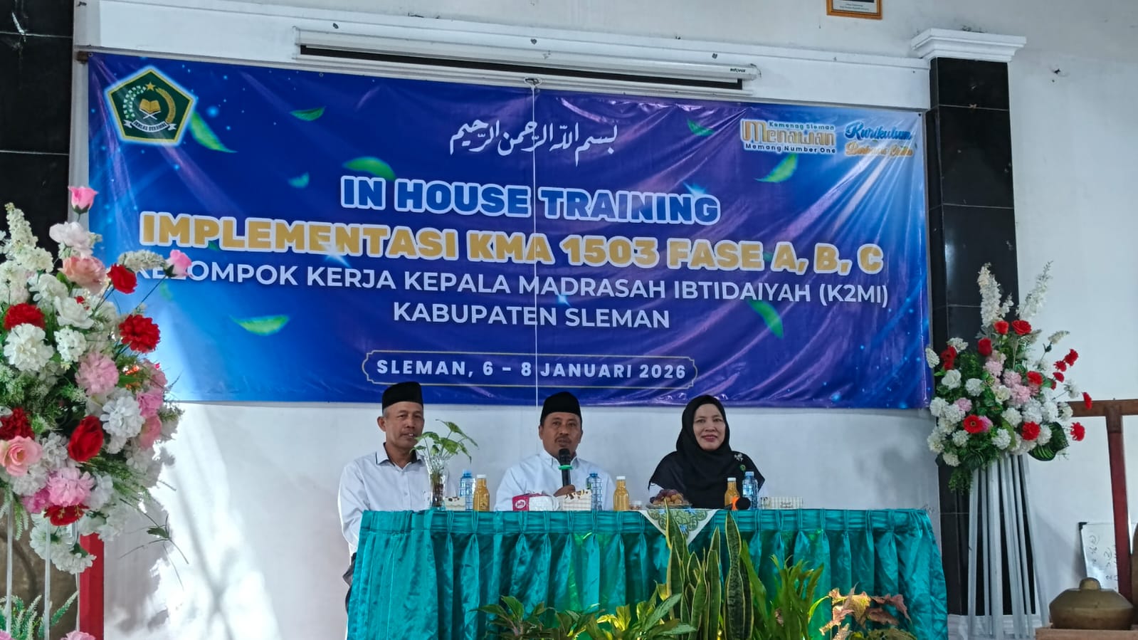 Kemenag Sleman News (MIN 1 Sleman)- Kelompok Kerja Kepala Madrasah Ibtidaiyah (K2M) Kabupaten Sleman menyelenggarakan kegiatan In House Training (IHT) Implementasi KMA 1505 Fase A, B, dan C yang berlangsung selama tiga hari, pada tanggal (6-8/1/2026) Kegiatan ini diikuti oleh Para Guru Kelas 1 dan 2 Madrasah Ibtidaiyah se-Kabupaten Sleman sebagai upaya meningkatkan pemahaman dan kapasitas kepemimpinan dalam implementasi kebijakan kurikulum madrasah.