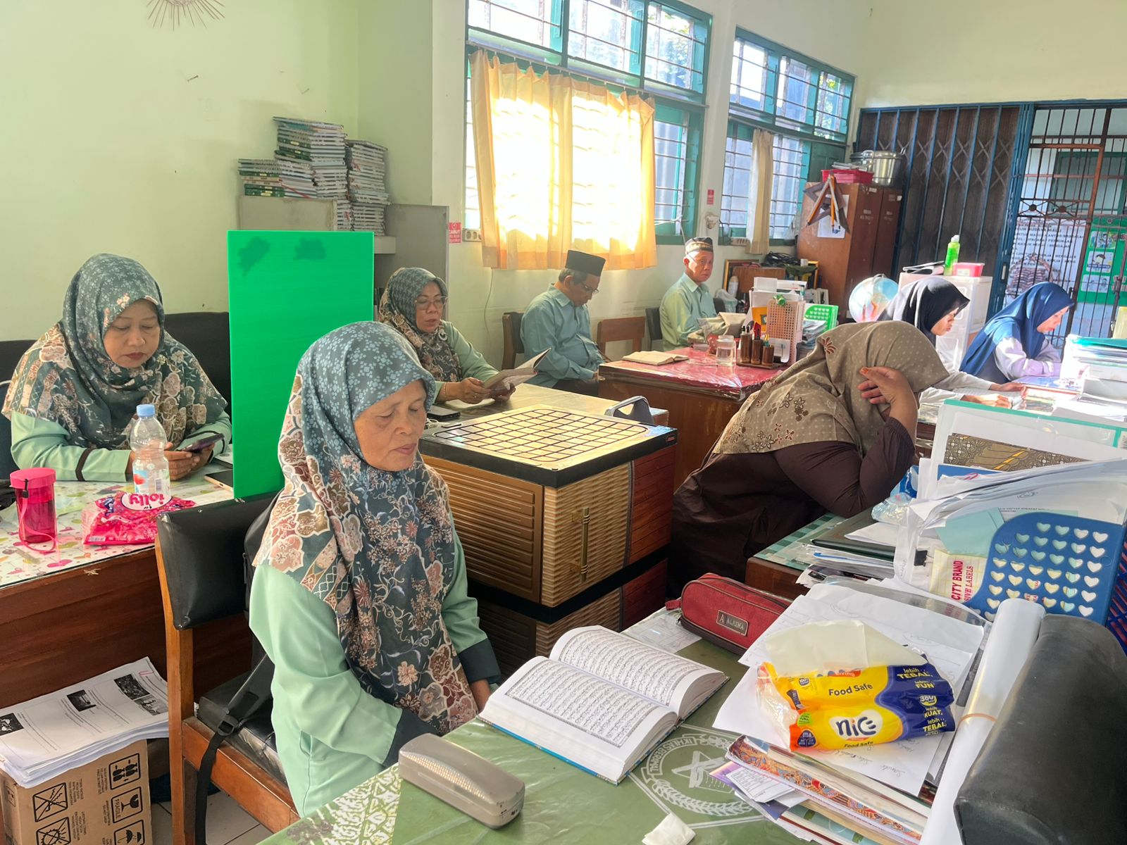 Seluruh tenaga pendidik dan kependidikan MTsN 7 Sleman mengikuti kegiatan ini dengan penuh kekhusyukan. Rangkaian acara diawali dengan pembacaan ayat suci Al-Qur’an secara bersama-sama hingga khatam yang dipimpin oleh Kepala MTsN 7 Sleman Samsul Arifin, S.Ag. di ruang guru.