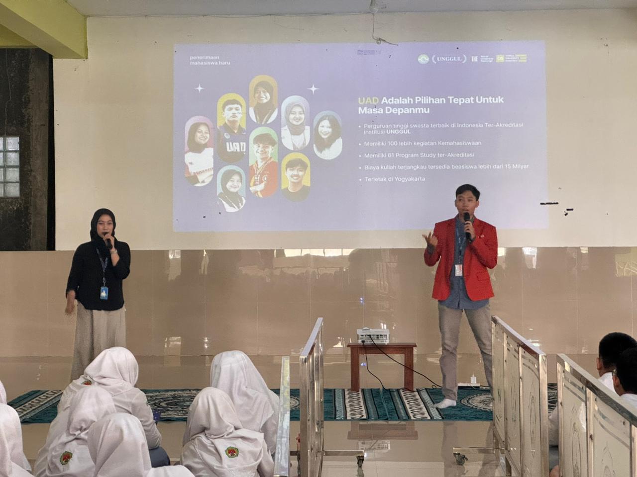 Kegiatan sosialisasi ini dilaksanakan di dua lokasi, yaitu Ruang AVA dan Masjid Muntasyirul Ulum, bersamaan dengan hadirnya Universitas Teknologi Yogyakarta (UTY). Dalam pemaparannya, narasumber dari UAD menjelaskan bahwa UAD telah terakreditasi Unggul dan memiliki 60 program studi yang tersebar di 6 kampus.