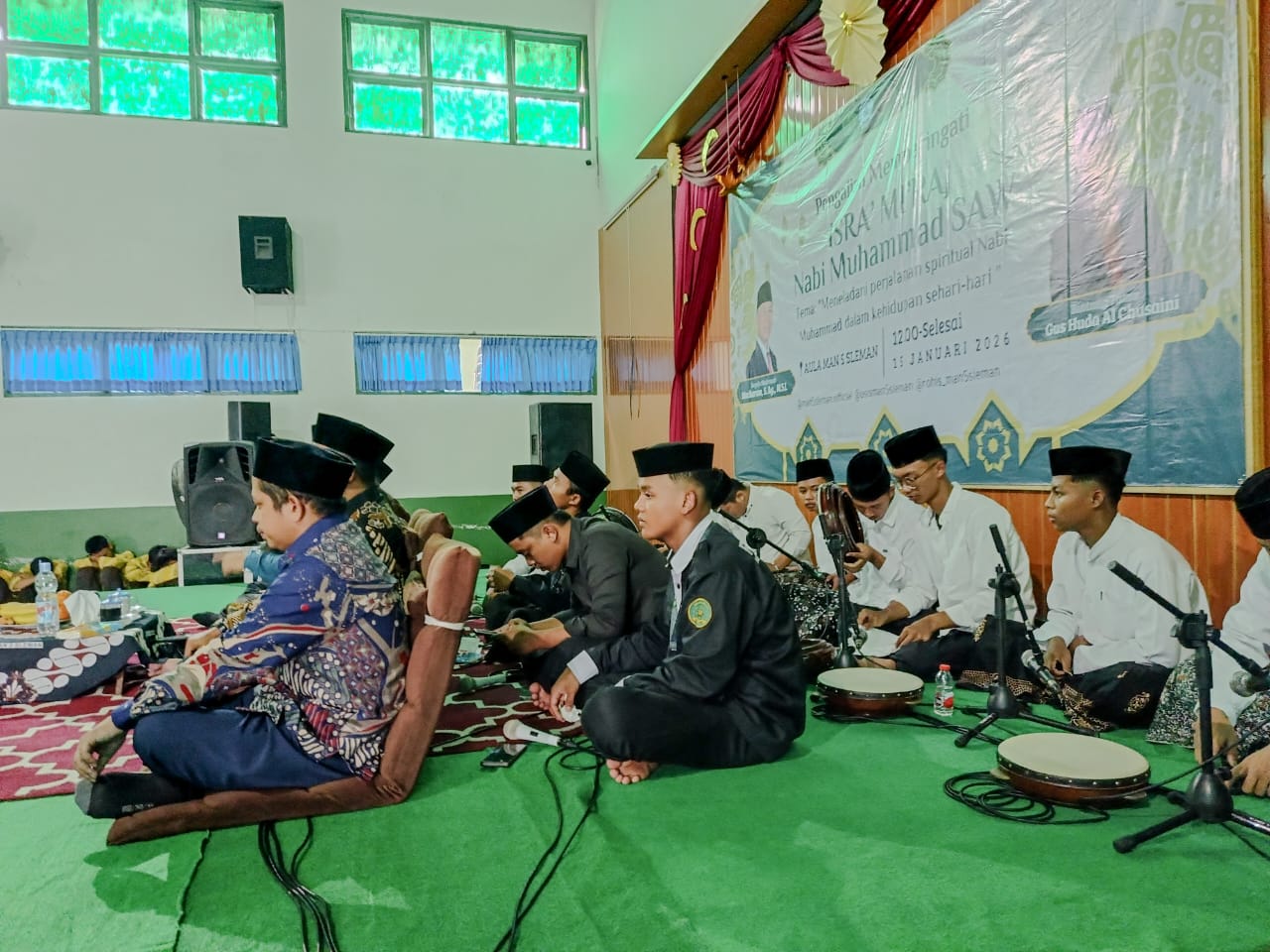 Kemenag Sleman News (MAN 5 Sleman)— Penampilan grup hadrah Alfa Salam MAN 5 Sleman turut menyemarakkan kegiatan pengajian dalam rangka peringatan Isra Mikraj Nabi Muhammad SAW yang digelar pada Kamis, 15 Januari 2026. Penampilan tersebut berlangsung di Aula MAN 5 Sleman dan menjadi salah satu rangkaian acara yang dinantikan oleh peserta pengajian.