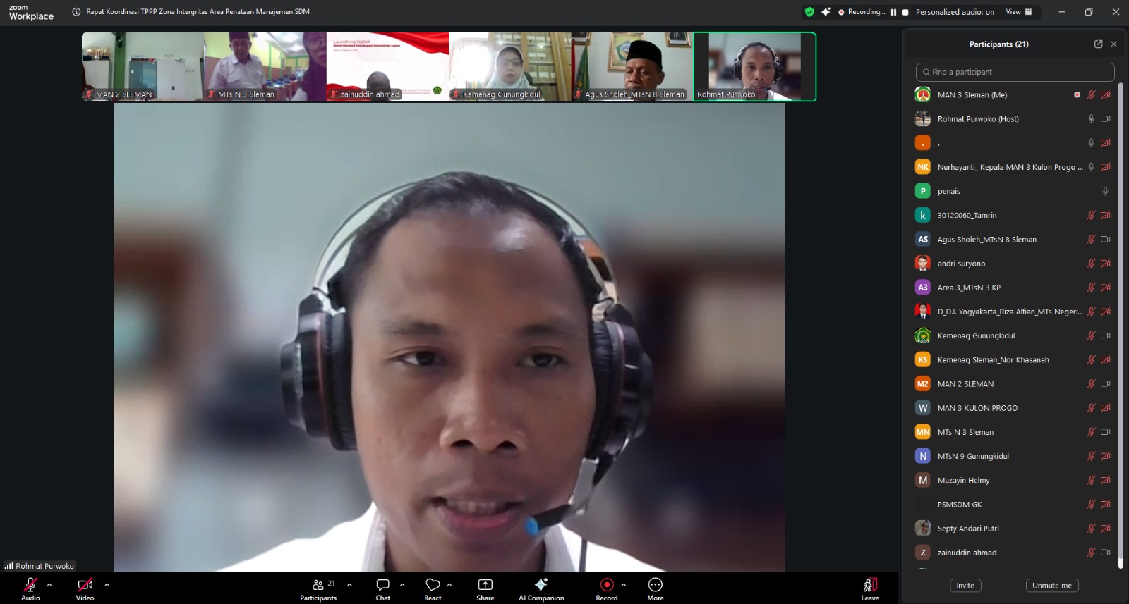 Adapun madrasah yang diundang dalam kegiatan Zoom Meeting ini meliputi kepala/tim ZI dari MAN 2 Sleman, MAN 3 Sleman, MAN 5 Sleman, MTsN 3 Sleman, dan MTsN 8 Sleman.