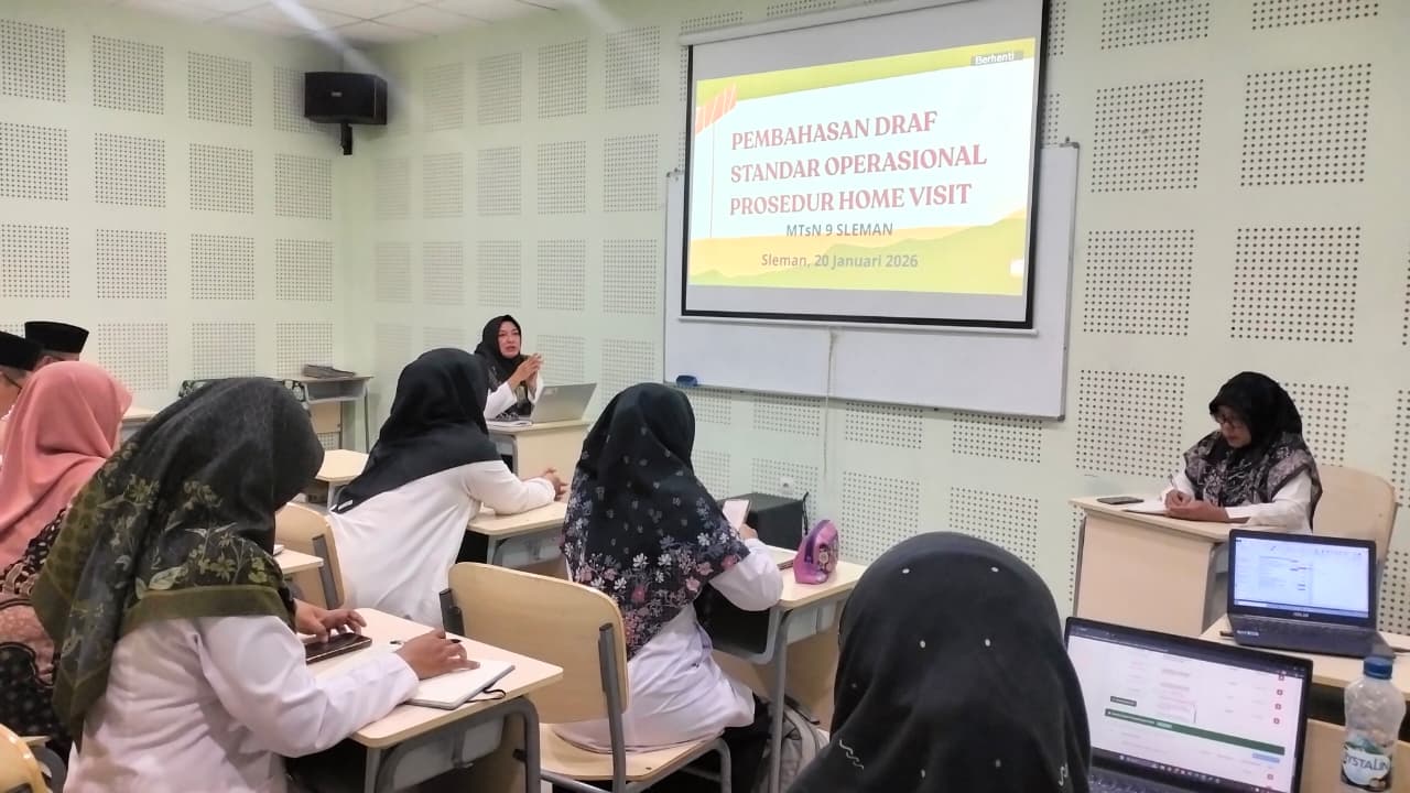 Kemenag Sleman News (MTsN 9 Sleman) – MTsN 9 Sleman menghadirkan seluruh wali kelas dan guru Bimbingan dan Konseling (BK) dalam kegiatan penyusunan Standar Operasional Prosedur (SOP) penanganan kasus siswa. Kegiatan ini dilaksanakan pada hari Selasa (20/1/2026) bertempat di Ruang Multimedia MTsN 9 Sleman.
