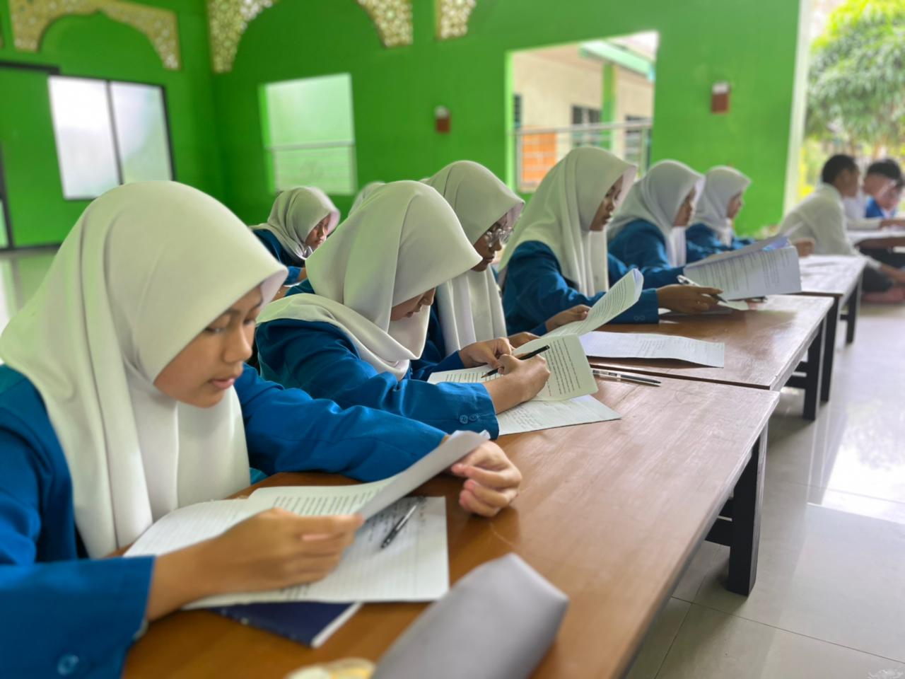 “Dalam ujian Bahasa Arab, siswa diminta untuk mempraktikkan percakapan sederhana, membaca teks, dan menjawab pertanyaan lisan. Tujuannya agar mereka tidak hanya memahami secara teori, tetapi juga mampu menggunakan Bahasa Arab dalam situasi nyata,” jelasnya.