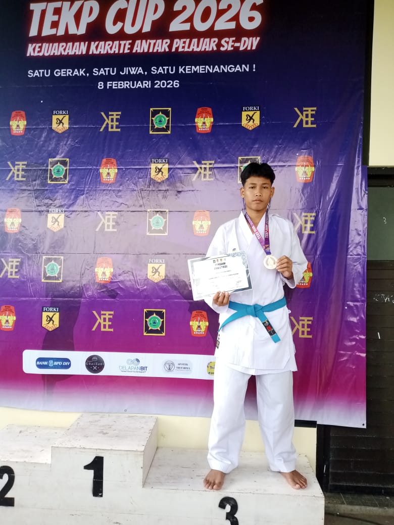 Kemenag Sleman News (MTsN 2 Sleman) — Prestasi membanggakan kembali ditorehkan oleh siswa MTsN 2 Sleman. Muhammad Safi’i berhasil meraih Juara 3 kategori Kadet Kumite +54 Kg dalam ajang Karate Antar Pelajar se-DIY TEKP Cup 2026 yang digelar pada Minggu (8/2) di GOR Cangkring, Kulon Progo.