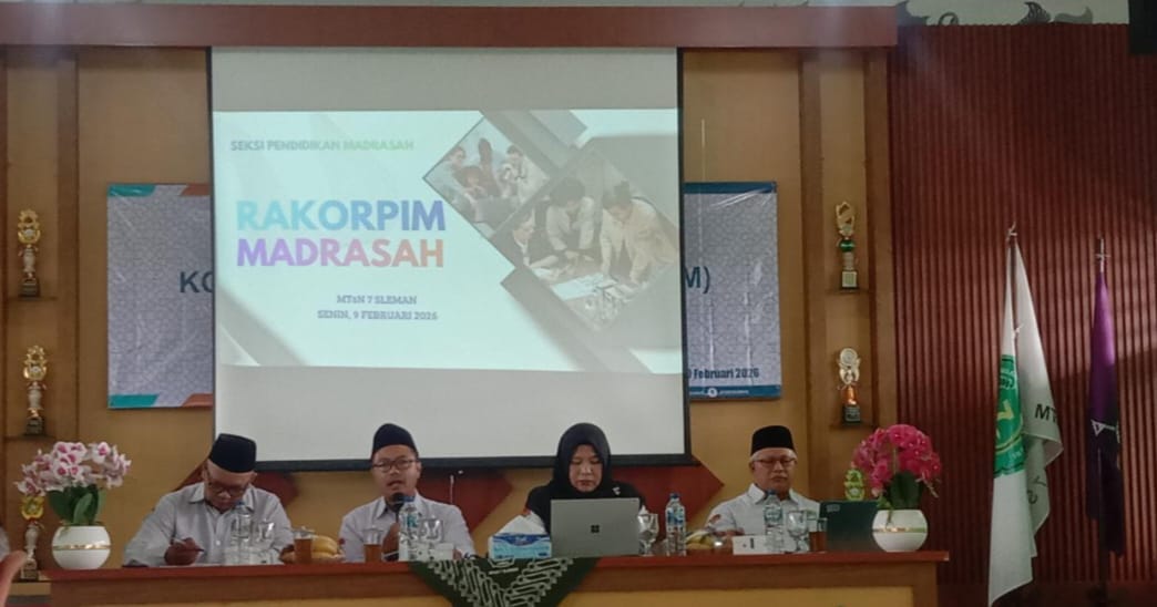 Kemenag Sleman News (MTsN 3 Sleman) – Kepala MTsN 3 Sleman, Suwardi, S.S., M.Pd., menghadiri Rapat Koordinasi Pimpinan (Rakorpim) di lingkungan Kantor Kementerian Agama Kabupaten Sleman pada Senin (02/02/2026). Bertempat di MTsN 7 Sleman, Jl. Cepet-Turi, Purwobinangun, Pakem, pertemuan ini menjadi ajang penguatan program strategis Kemenag Sleman di tahun 2026. Hadir dalam kegiatan tersebut jajaran pimpinan Kemenag Sleman, di antaranya Kasubag TU H. Sangaji, S.H.I., Plt. Kasi Dikmad Tri Wahyuni, S.Ag., serta Ketua Kelompok Kerja Pengawas (Kapokjawas) Drs. H. Daryono, M.Pd.