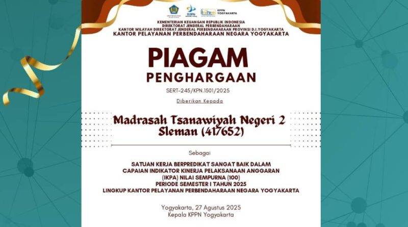 Read MoreKemenag Sleman News (MTsN 2 Sleman) — MTsN 2 Sleman kembali menorehkan prestasi membanggakan. Madrasah ini berhasil meraih piagam penghargaan