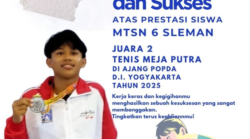 Read MoreKemenag Sleman News (MTsN 6 Sleman)–Kyla Putri Payana dan Ilham Bahtiar siswa kelas VIII telah berhasil menyabet medali dalam Pekan
