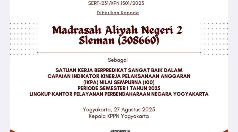 Read MoreKemenag Sleman News (MAN 2 Sleman)- MAN 2 Sleman berhasil menorehkan prestasi di Lingkup Kantor Pelayanan Perbendaharaan Negara (LKPPN) Yogyakarta.
