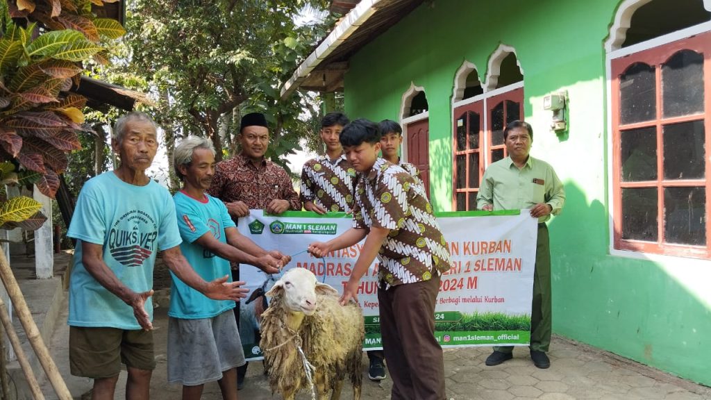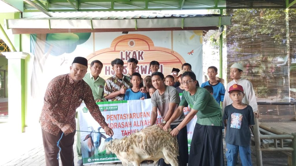 Kemenag Sleman News (MAN 1 Sleman) –– Sebagai institusi keagamaan yang konsisten menyelenggarakan kurban, MAN 1 Sleman senantiasa tetap berbagi dengan sesama, kali ini adalah dengan membagikan hewan kurban kepada masyarakat yang membutuhkan. Hal tersebut disampaikan kepala madrasah, H. Anis Syafa’at, S.Ag, M.Pd.I saat mentasyarufkan hewan kurban ke berbagai tujuan pada Jumat (14/06/2024).