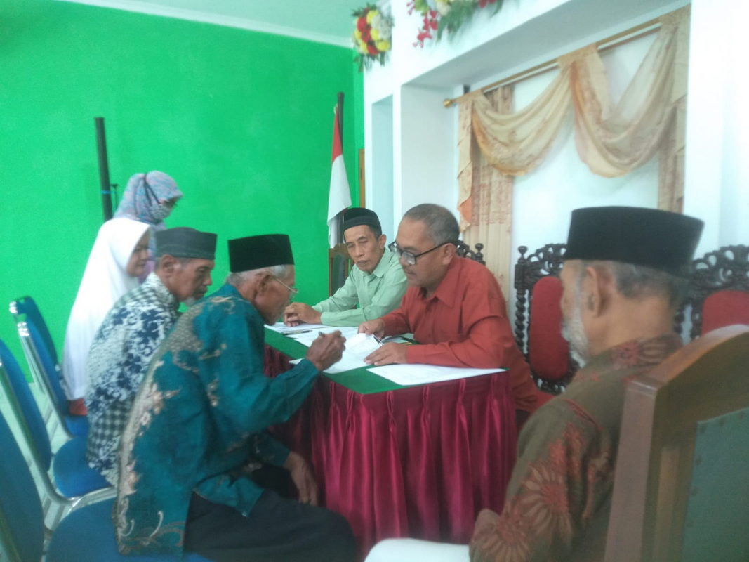 Sleman (KUA Moyudan) – Kepala KUA sebagai Pejabat Pembuat Akta Ikrar Wakaf (PPAIW) Melaksanakan Fungsi Pelayanan Wakaf dari Musholla Al Istiqomah Gamplong V , Sumberrahayu, Moyudan yang di laksanakan di KUA Moyudan Jumβat, 22 September 2023 , acara Ikrar Wakaf dipimpin langsung oleh Kepala KUA Moyudan Dul Rohman, S.Ag yang didampingi PAIF Moyudan Hartanto, S.Ag.