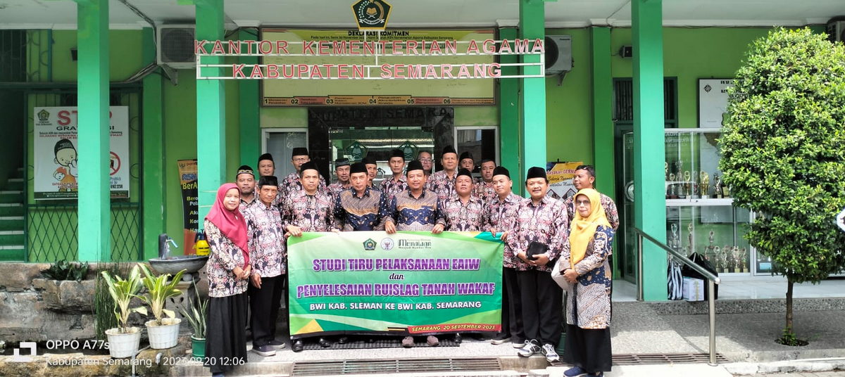 Semarang (Kemenag News) – Penyelenggara Zakat Wakaf Kementerian Agama Kabupaten Sleman gandeng BWI Perwakilan Kabupaten Sleman beserta 17 pengelola Wakaf EAIW KUA Kapanewon se-Kabupaten Sleman melaksanakan Studi Tiru EAIW dan Pengelolaan Tanah Wakaf Terdampak Tol di Kementerian Agama Kabupaten Semarang pada Rabu (20/9).