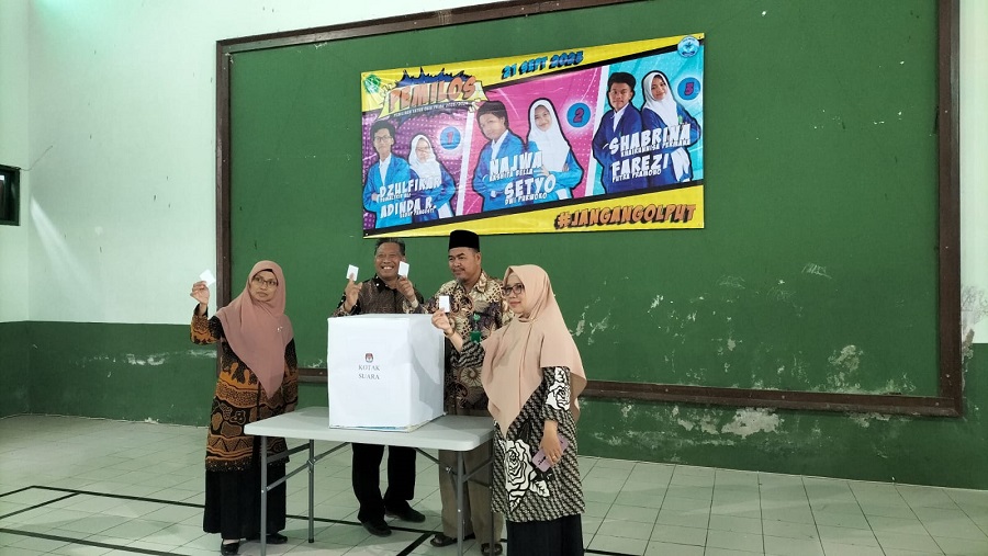 Selayaknya pemilihan umum yang dilaksanakan di masyarakat, panitia pemilos juga mempersiapkan dan mengatur segala sarana dan prasaranya. Mulai dari daftar hadir pemilih, kotak suara, surat suara untuk mencoblos, bilik suara, dan tinta bukti telah mencoblos. 3 pasangan kandidat duduk berjejer di lokasi pemilos dan foto bersama dengan kepala madrasah.