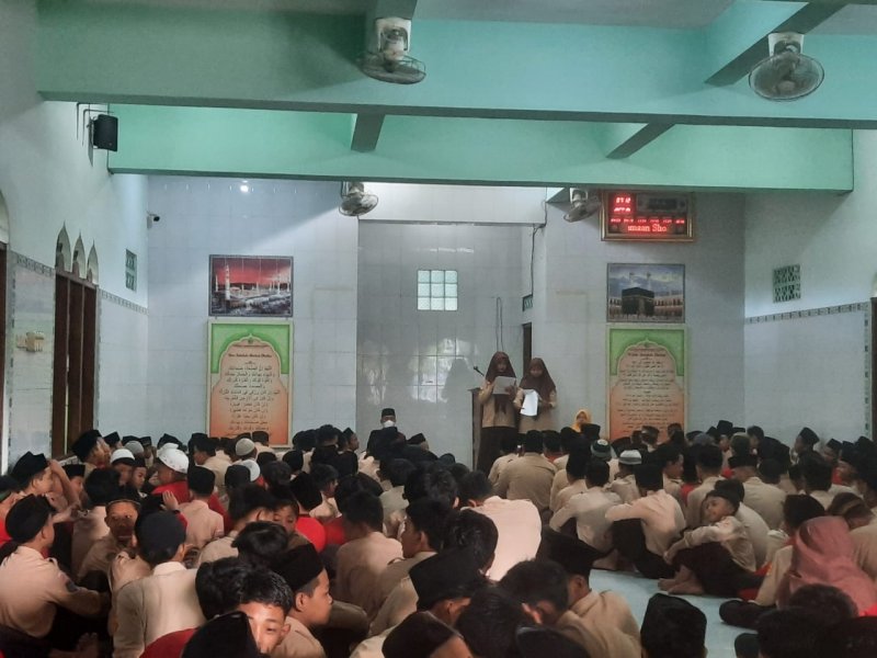 Sleman (MTs N 8 Sleman) – Organisasi Siswa Intra Sekolah (OSIS) MTsN 8 Sleman menggelar kegiatan pemaparan visi misi ketiga calon ketua dan wakil ketua untuk kepengurusan OSIS periode 2023 / 2024 yang disaksikan langsung oleh semua warga madrasah pada Jumat (22/9/2023) bertempat di Masjid Nurul Ummah yang dipandu dua siswa bertalenta Cilla dan Kaylila kelas 9F.