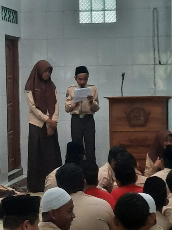 Sleman (MTs N 8 Sleman) – Ada yang sedikit berbeda dari hari biasanya setelah sholat dhuha hari ini Jumat (22/9/2023) di Masjid Nurul Ummah, dimana siswa tidak langsung bubar kekelasnya masing-masing untuk mengikuti proses belajar mengajar. Seluruh siswa, guru, dan pegawai tetap berada di masjid guna mendengarkan visi misi yang akan disampaikan ketiga pasangan yang akan berkompetisi pada pemilihan Senin mendatang.
