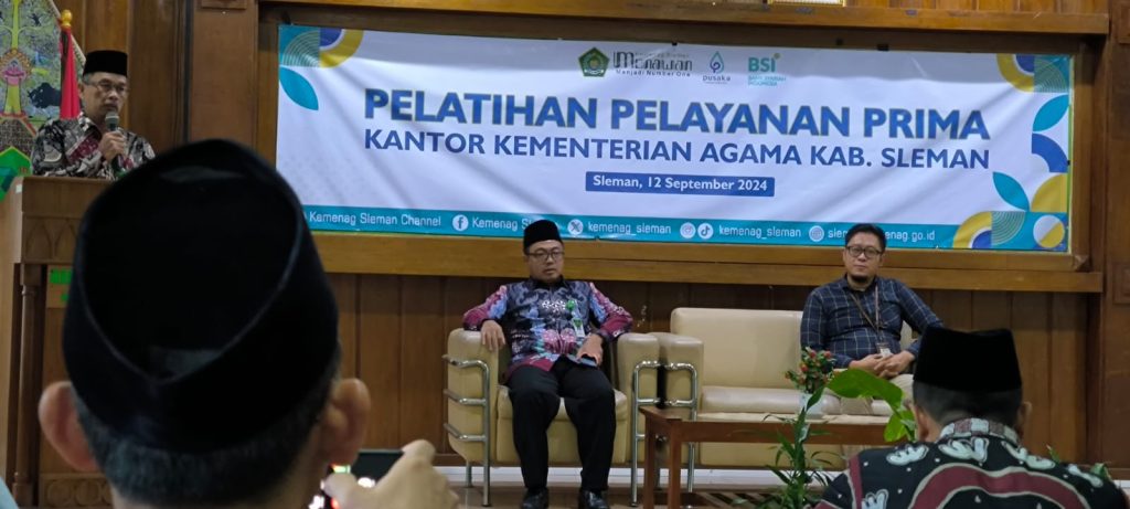 Kemenag Sleman News (MTsN 8 Sleman) – Kepala MTsN 8 Sleman, Agus Sholeh, S.Ag., turut serta dalam Pelatihan Pelayanan Prima yang diadakan oleh Kantor Kementerian Agama Kabupaten Sleman pada Kamis (12/09/2024). Acara ini berlangsung di Aula Lantai 3 Kantor Kemenag Kabupaten Sleman dan diikuti oleh para Kepala Madrasah Negeri serta Kepala Kantor Urusan Agama (KUA) di bawah Kemenag Sleman.