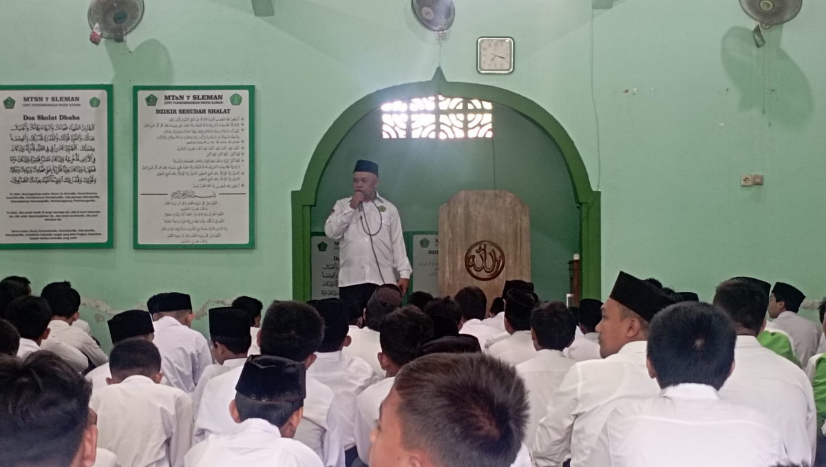 Sejatinya tanggung jawab mendidik dan membina peserta didik di MTsN 7 Sleman menjadi generasi penerus yang beriman dan bertaqwa itu adalah tugas kita semua elemen keluarga besar MTsN 7 Sleman. Lebih lanjut kita sangat mengharapkan seluruh peserta didik MTsN 7 Sleman ini agar dapat terbiasa dalam hal melakukan ibadah yaitu melalui sholat Dhuha berjamaah. (rdt)