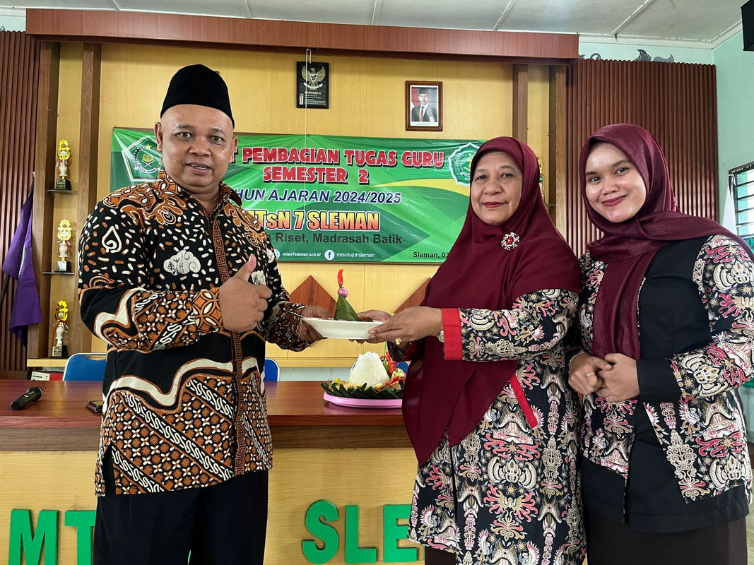 Dalam sambutannya Kepala MTsN 7 Sleman menjelaskan terkait tujuan diiselenggarakan kegiatan tersebut. “Kegiatan ini menjadi wujud syukur sekaligus doa bersama agar madrasah terus diberi keberkahan, dan seluruh keluarga MTsN 7 Sleman senantiasa semangat dalam mengabdi kepada bangsa dan agama,” Samsul Arifin, S.Ag.