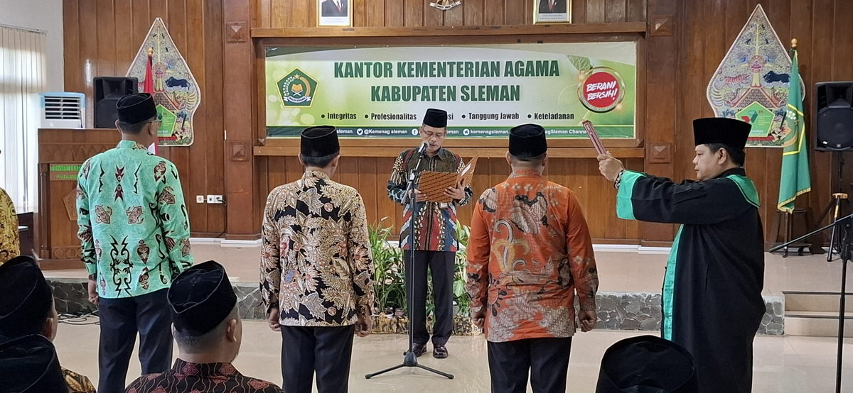 Kemenag News Sleman – Dalam rangka meningkatkan kinerja pegawai di lingkungan Kemenag Sleman, Kantor Kementerian Agama Kabupaten Sleman menggelar Pengambilan Sumpah Jabatan Pejabat Struktural, Jumat (17/1/2025) di Aula kantor setempat.